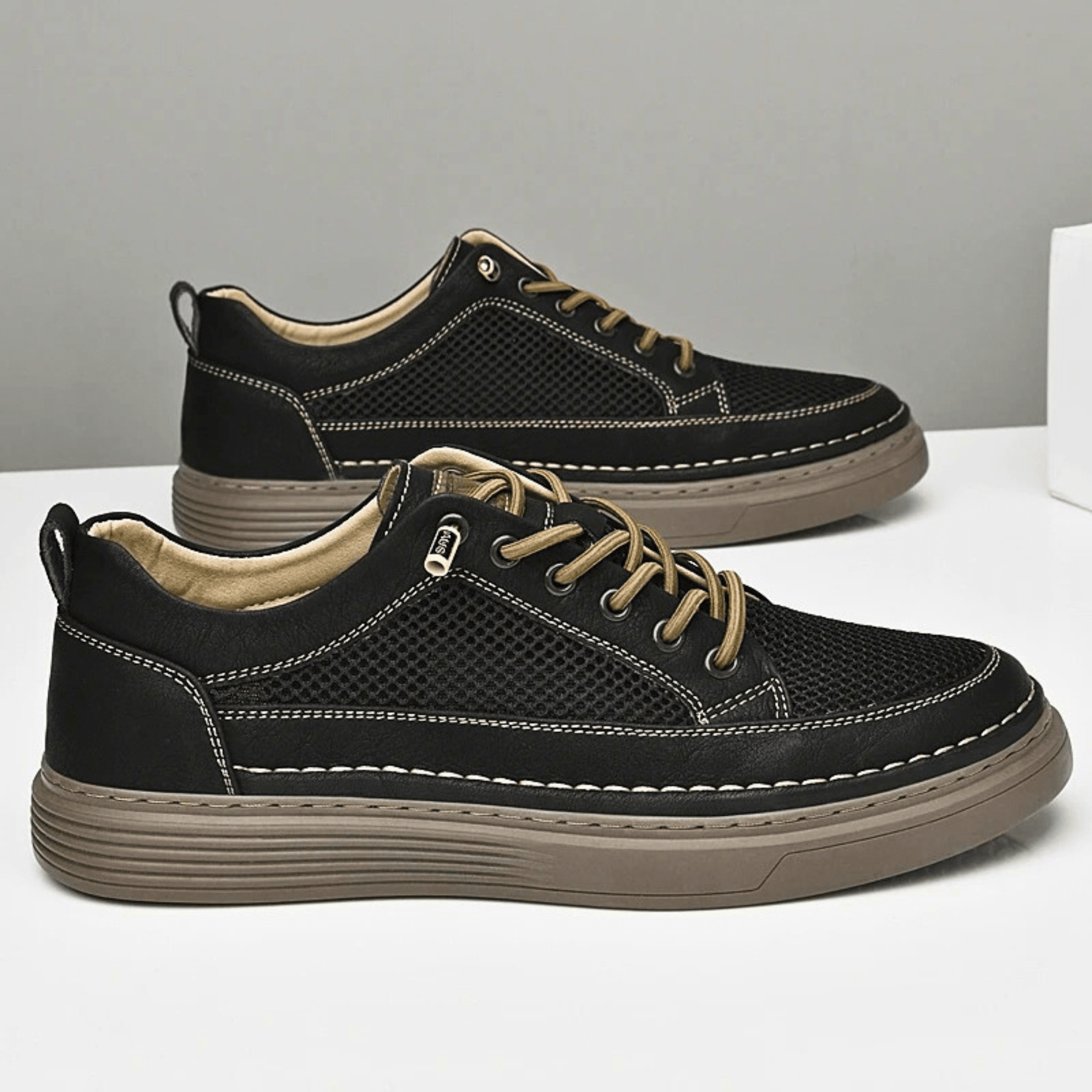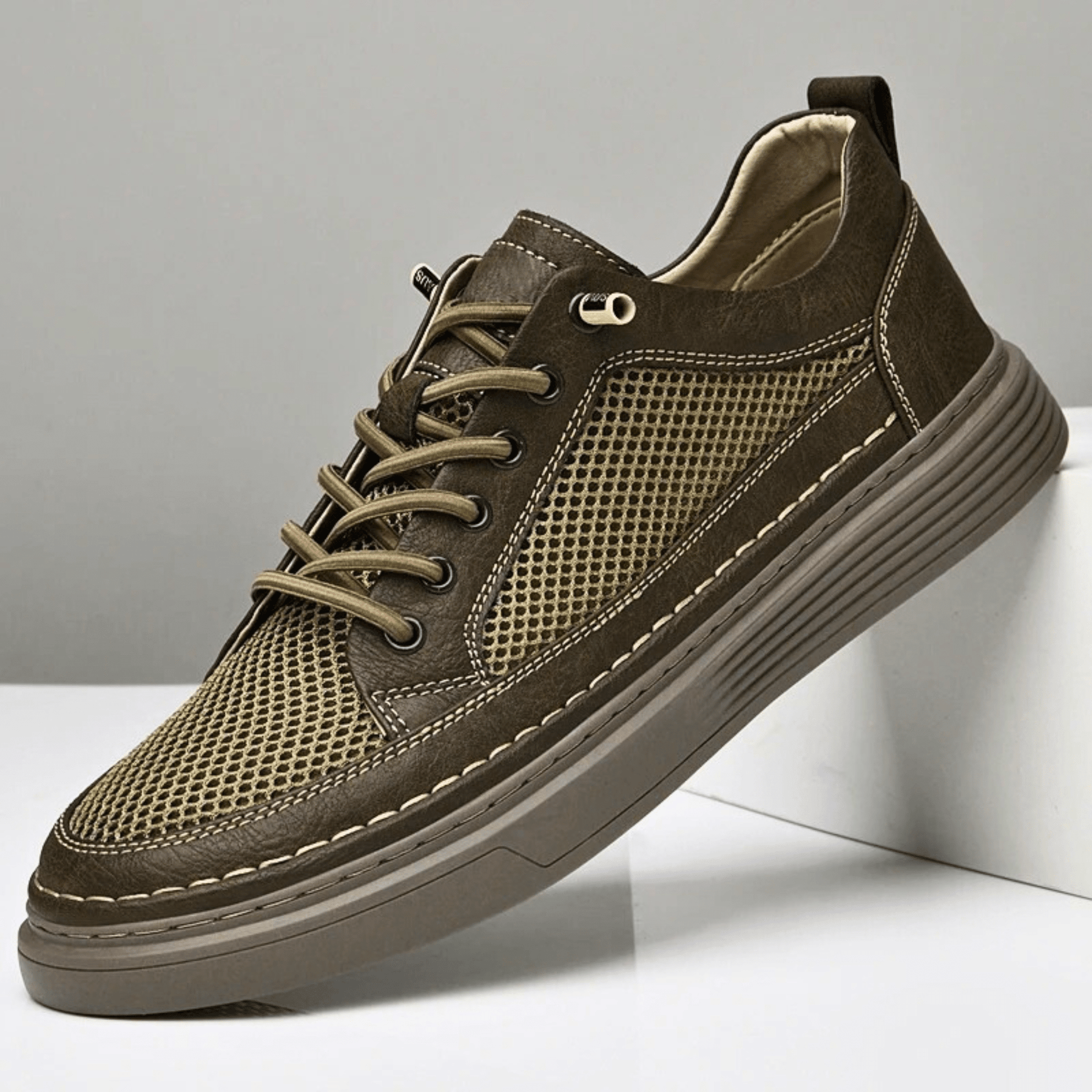 Crafted from premium genuine cow leather and breathable AirMesh for a luxurious feel with maximum airflow. Featuring an ergonomic arch, cushioned insole, and thick, supportive outsole, they deliver all-day comfort even on the hottest days.