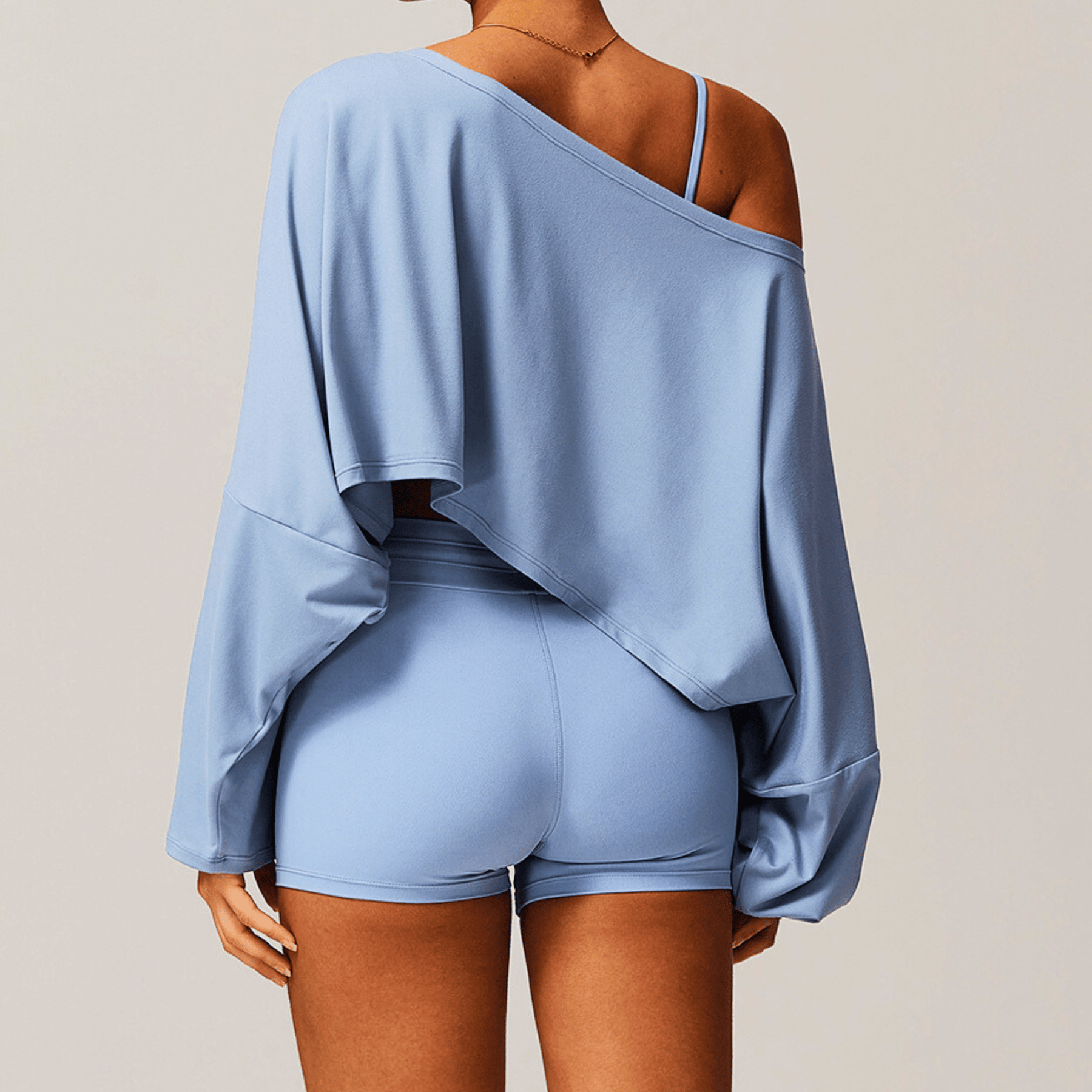 Crafted from 4-way stretch, quick-dry fabric for maximum comfort and mobility. Featuring a relaxed crop top and high-rise shorts with an elastic waistband and drawcord, it's perfect for workouts or lounging in style.
