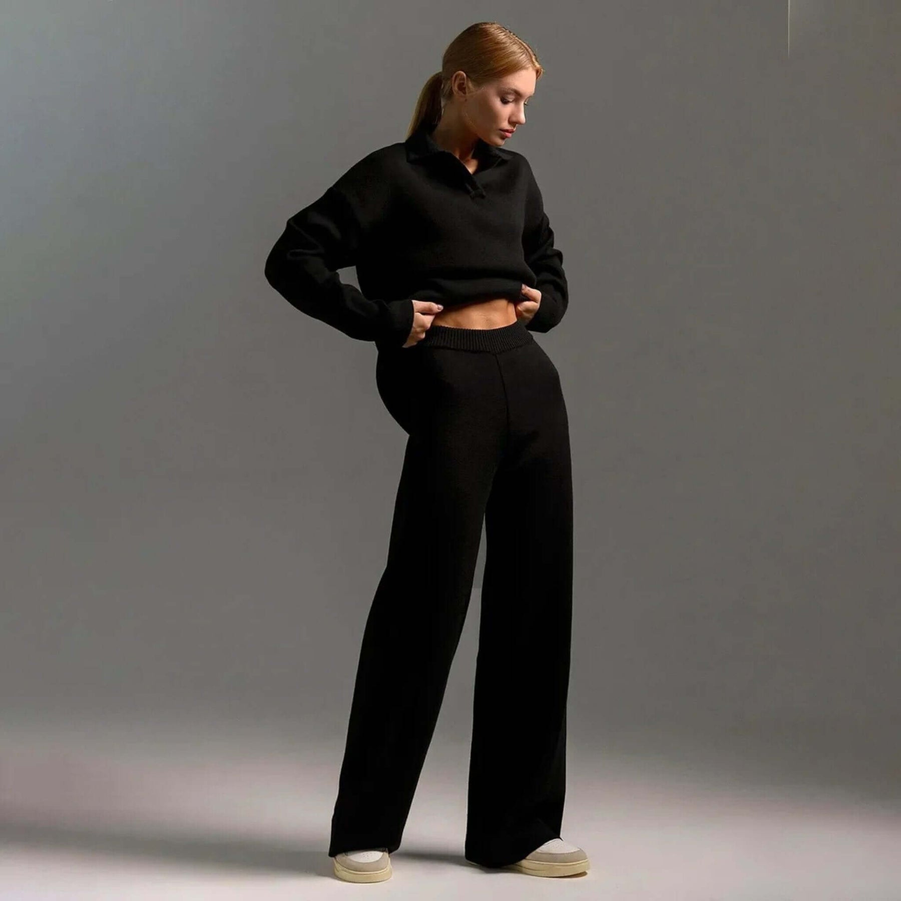 With an elastic, comfortable fit, this two-piece set offers the perfect blend of comfort and chic, making it a must have for your cold weather wardrobe.