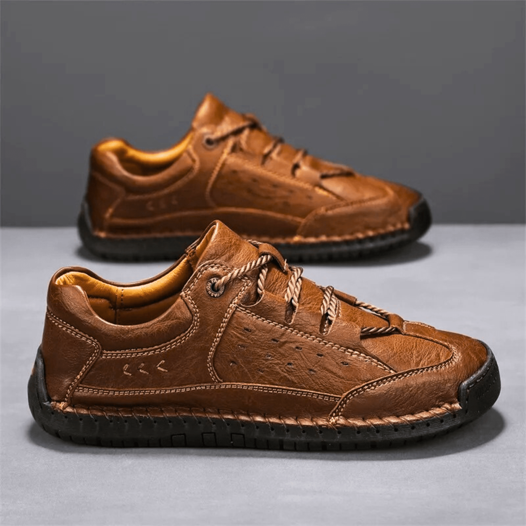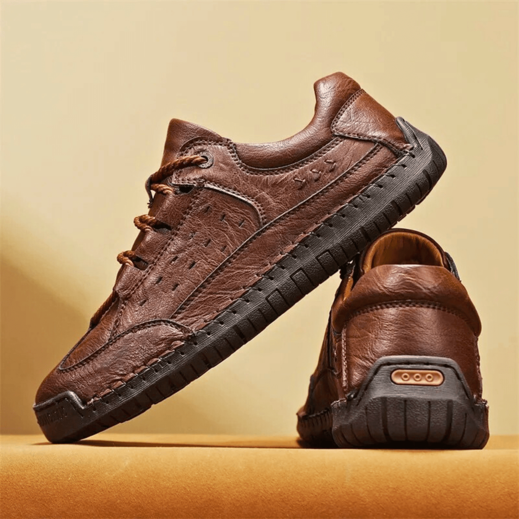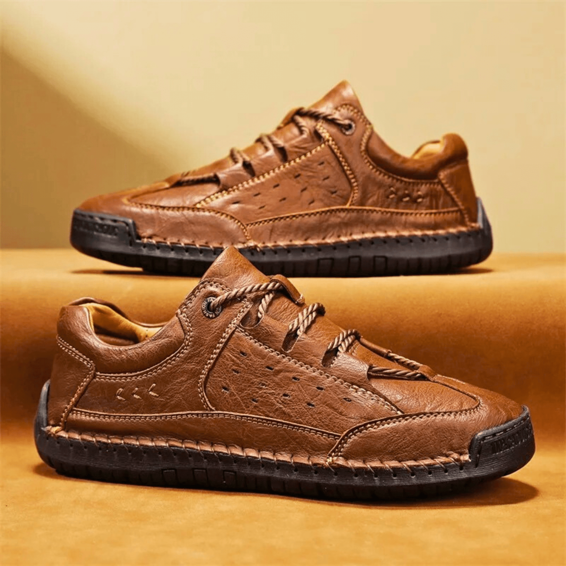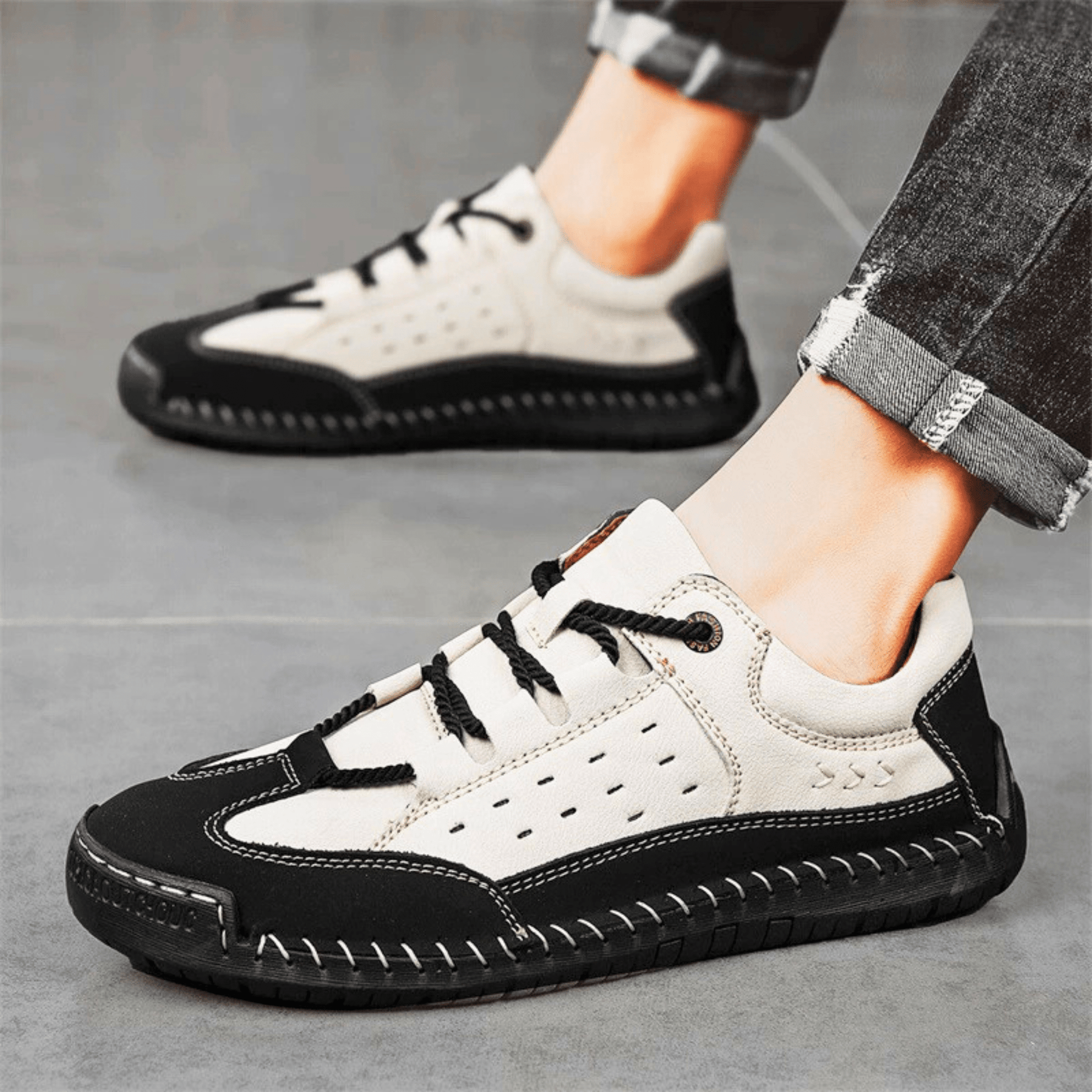 Crafted from premium leather with meticulous hand-stitching for a refined look. Designed with a cushioned insole, ergonomic arch support, and a rugged, non-slip outsole, these sneakers deliver superior durability.