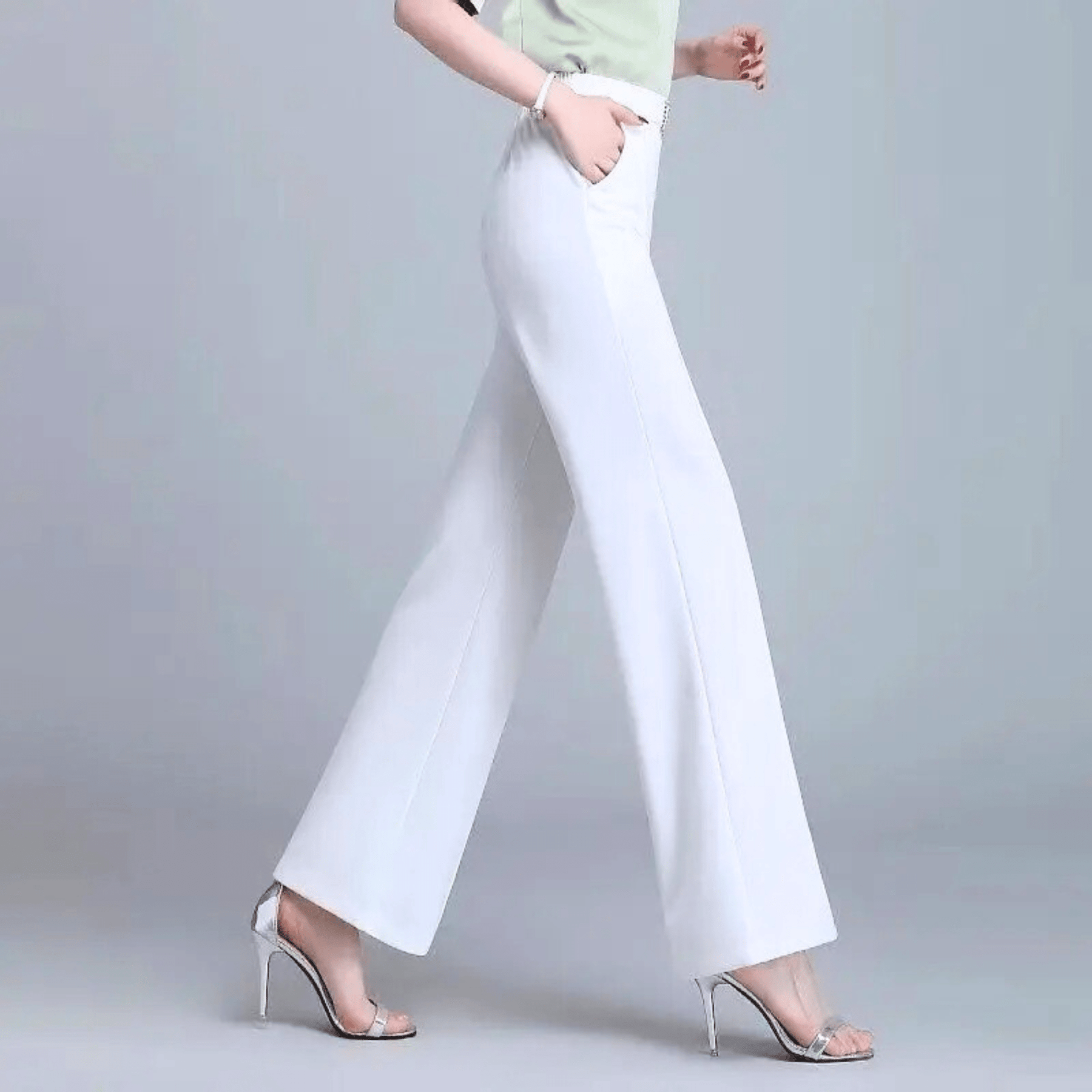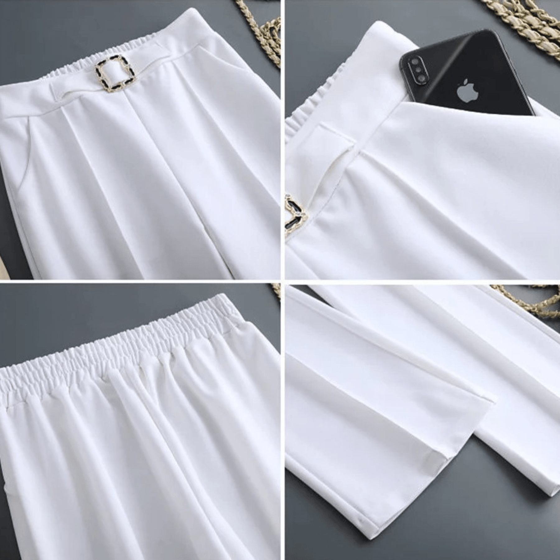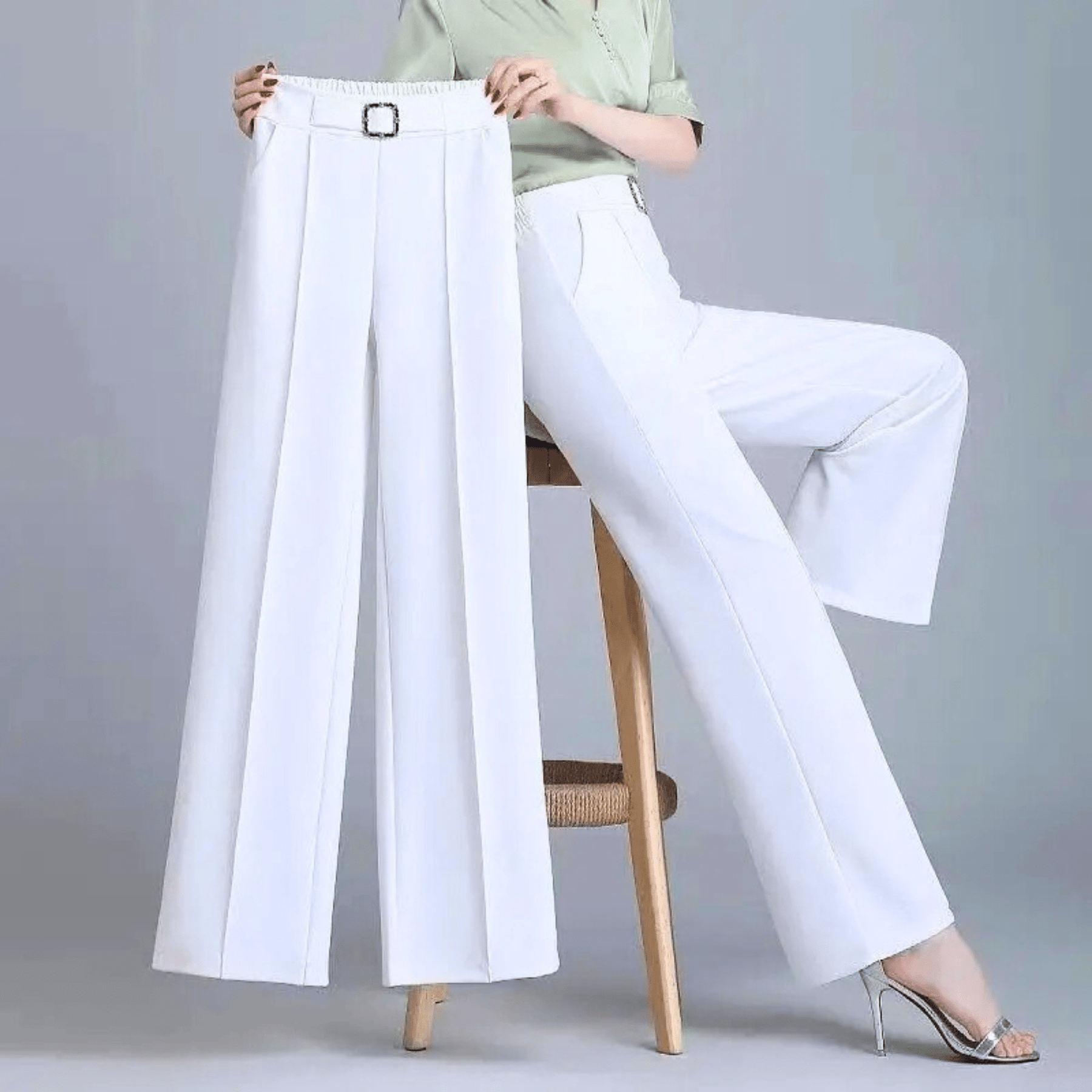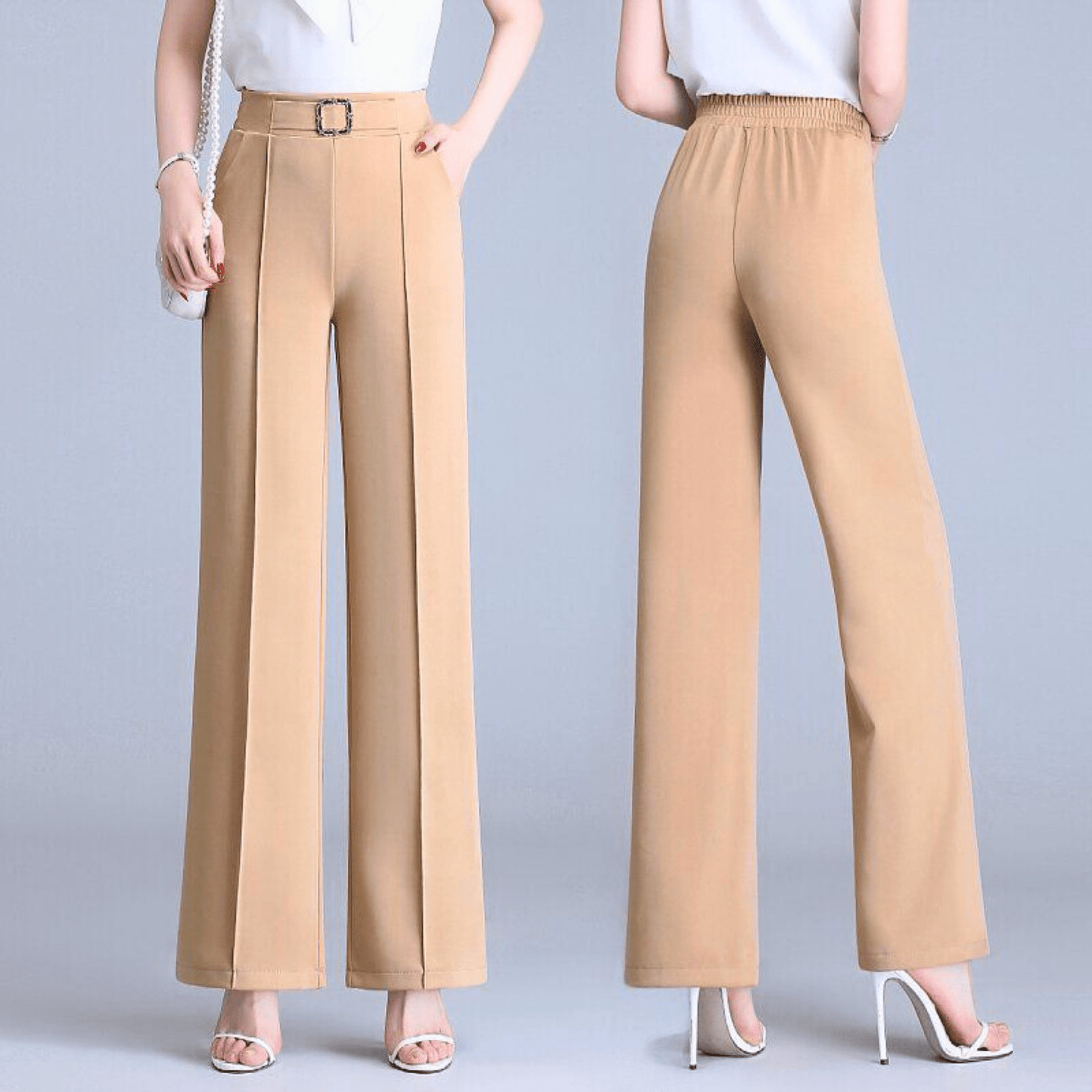 Crafted from breathable, wrinkle-resistant ice silk fabric that keeps you cool and polished. Featuring a sophisticated high-waist silhouette with structured pleats, an elastic waistband, and a flowing wide-leg design for effortless style and movement.