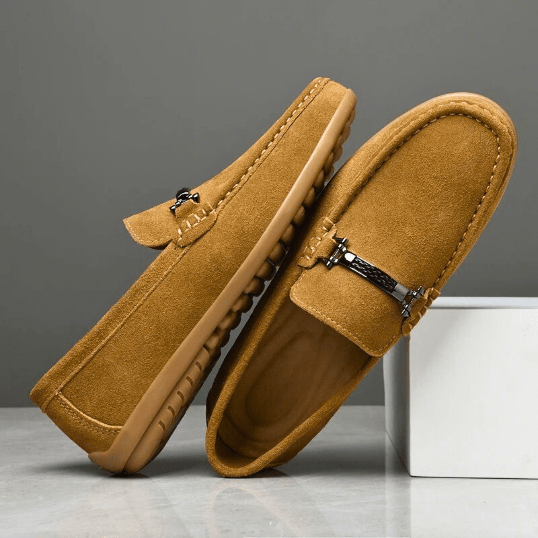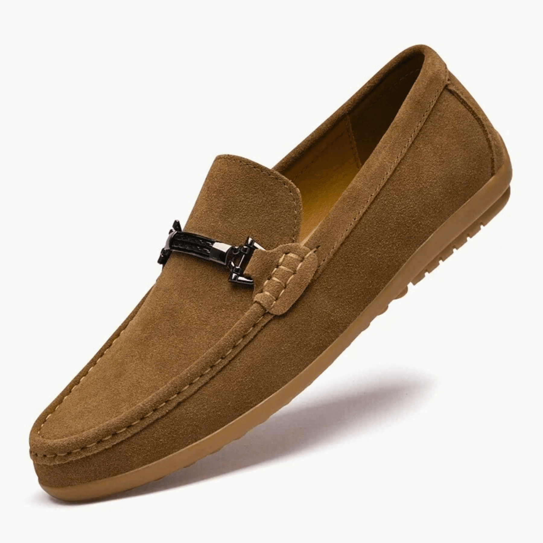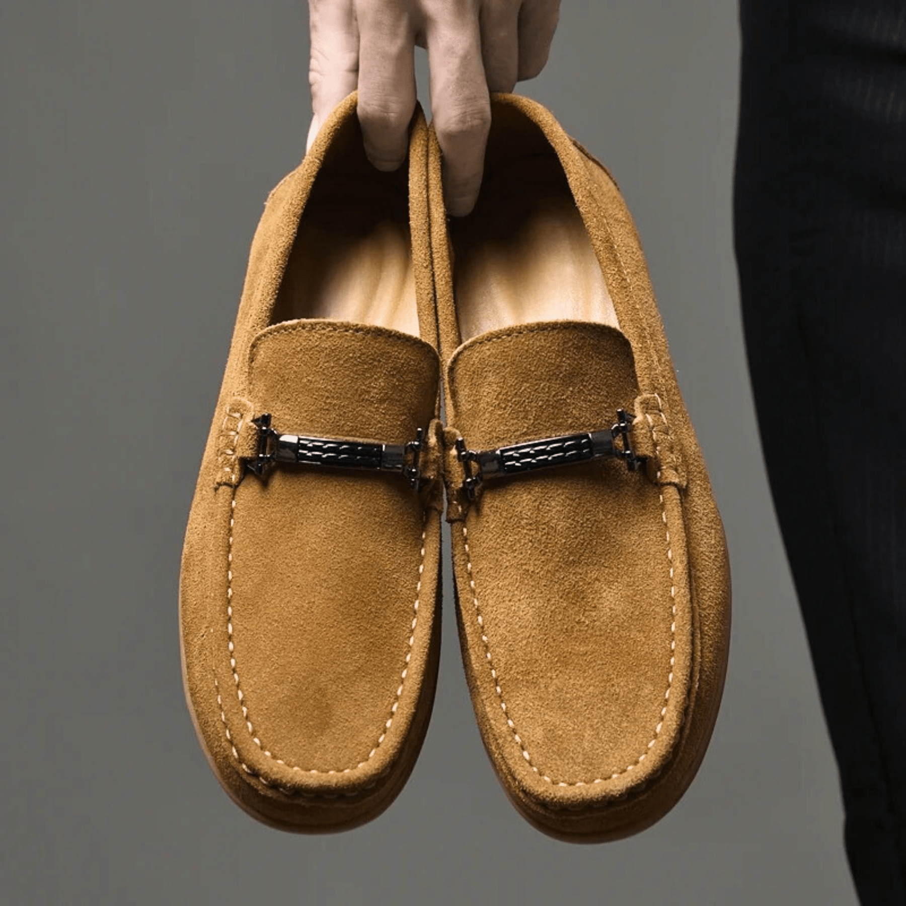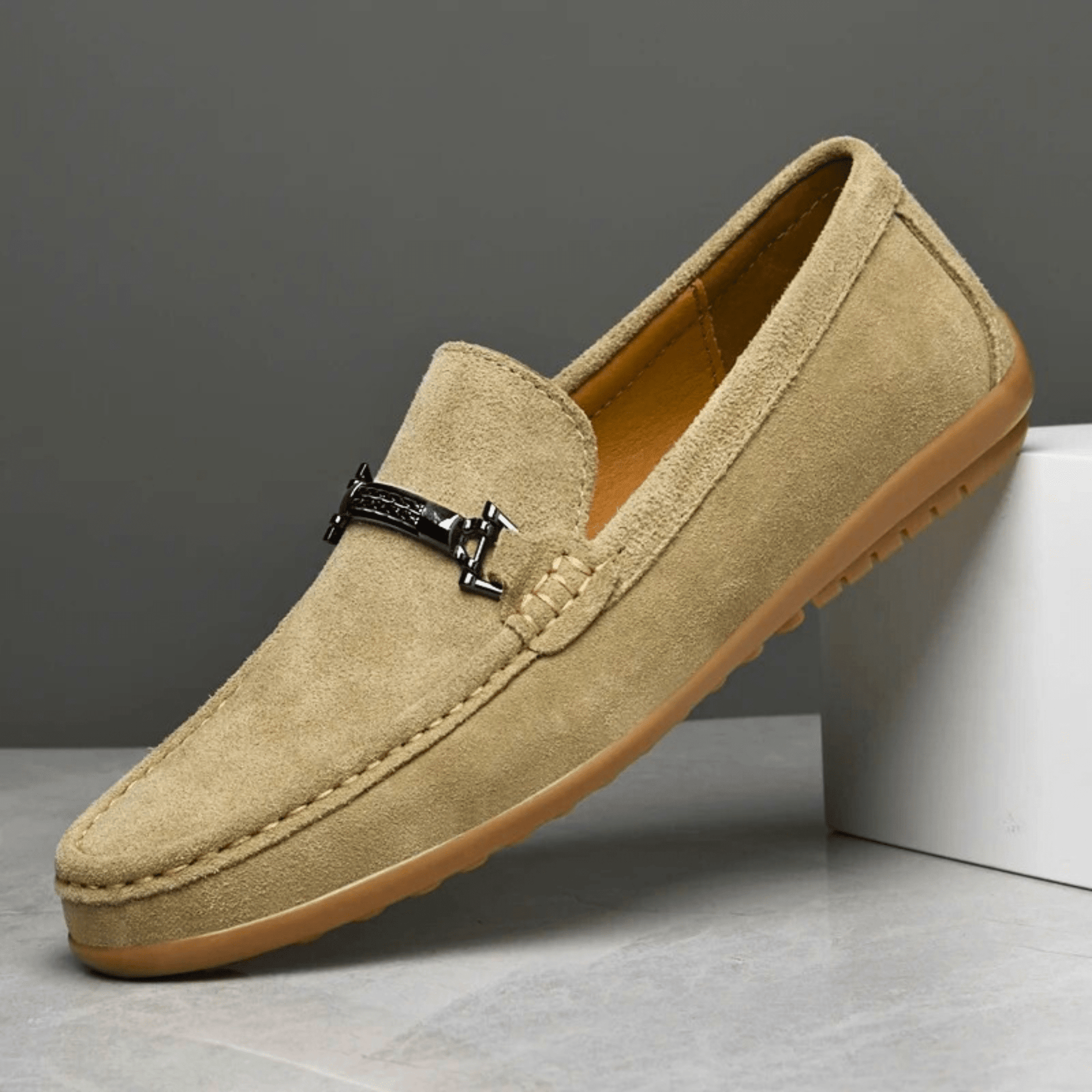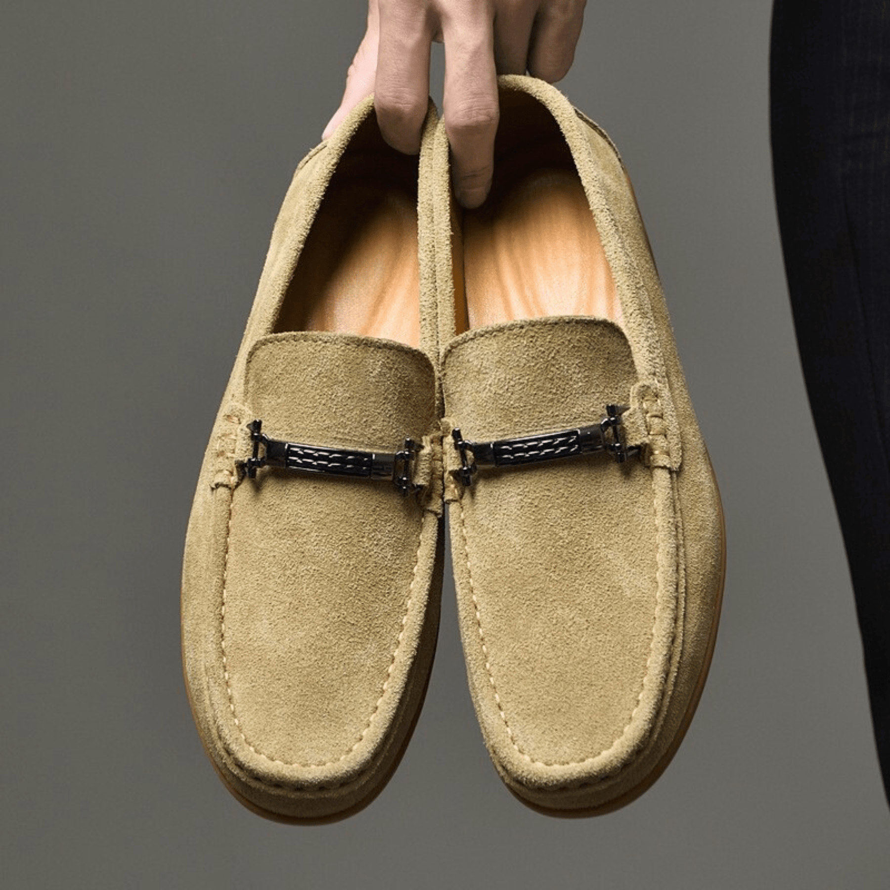 Crafted from genuine Italian suede leather with designer buckle detailing for a refined, modern look. Featuring a cushioned insole, ergonomic arch support, and a non-slip outsole, they deliver luxurious comfort with every step.