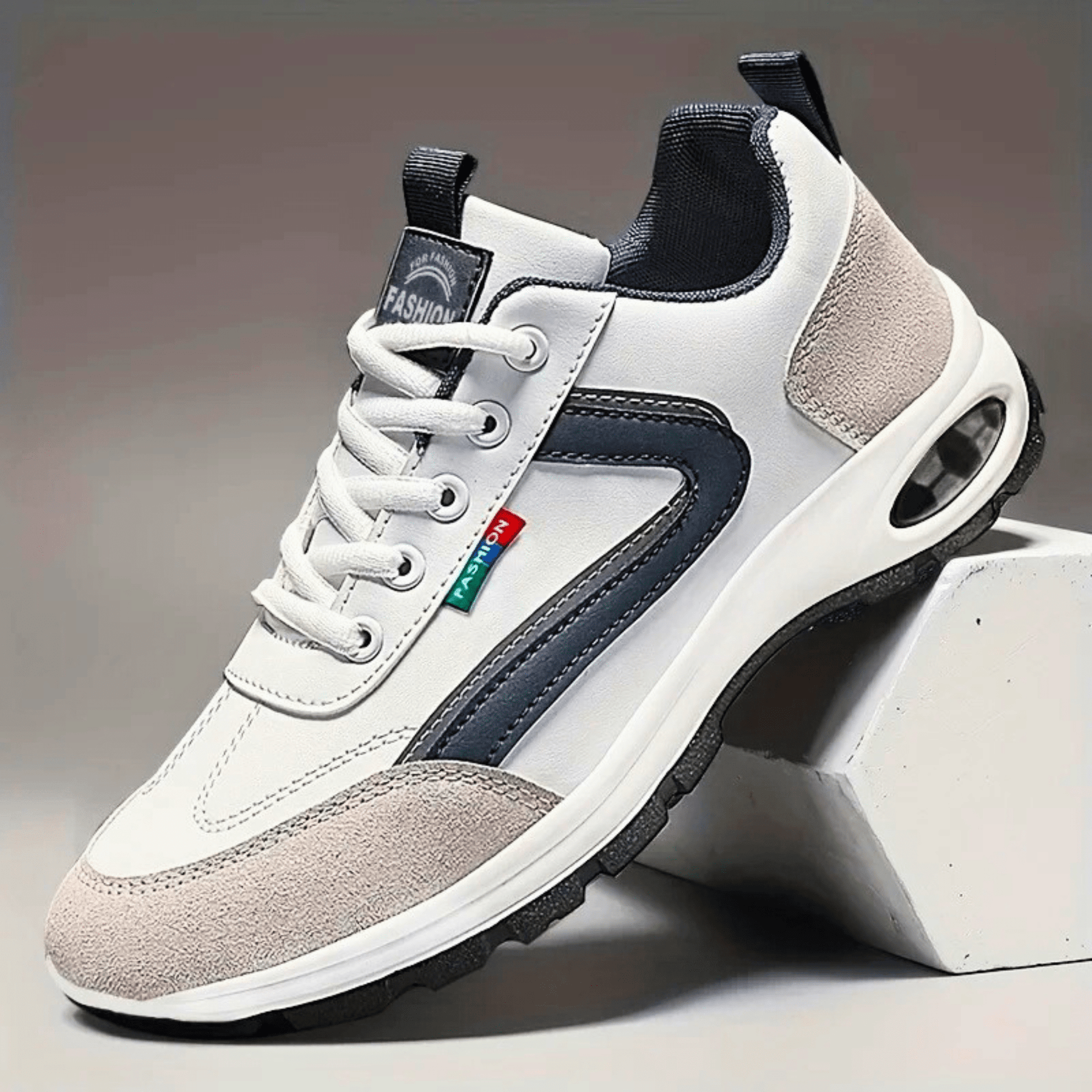 Designed for all-day performance, featuring a breathable upper, shock-absorbing heel cushion, and anti-slip outsole. With a modern design, contrast suede detailing, and padded ankle support, they blend comfort with street-ready style.