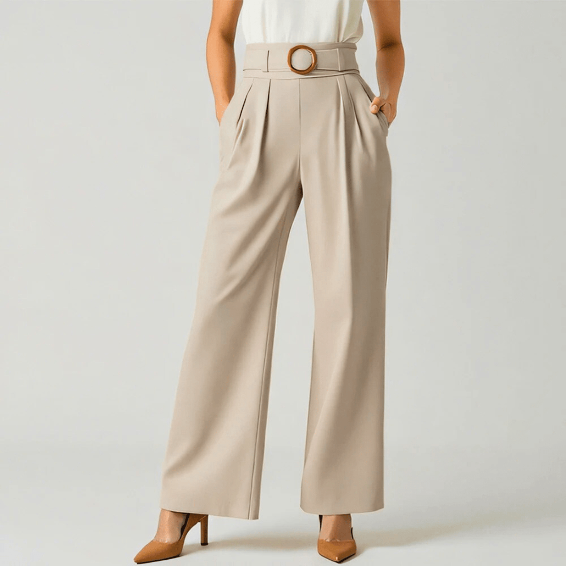 Crafted from breathable, wrinkle-resistant fabric for a cool, tailored fit. Featuring a sophisticated high-waist silhouette with structured pleats, an elastic waistband, and a flowing wide-leg design for effortless style and all-day comfort.