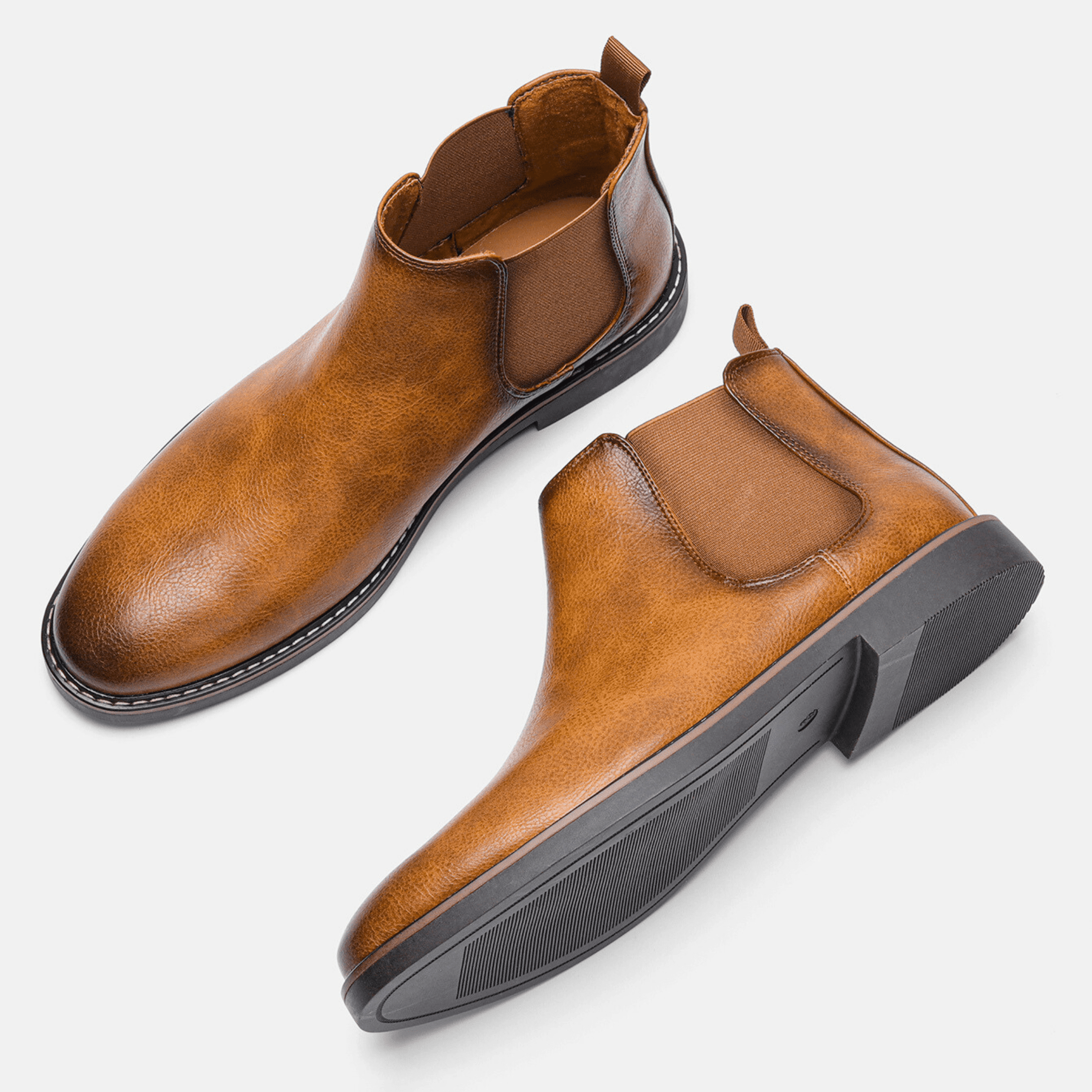 Crafted from premium cowhide leather, delivering natural durability and refined texture that improves with age. Designed with a timeless silhouette and elastic side panels, they transition seamlessly from casual wear to formal occasions.