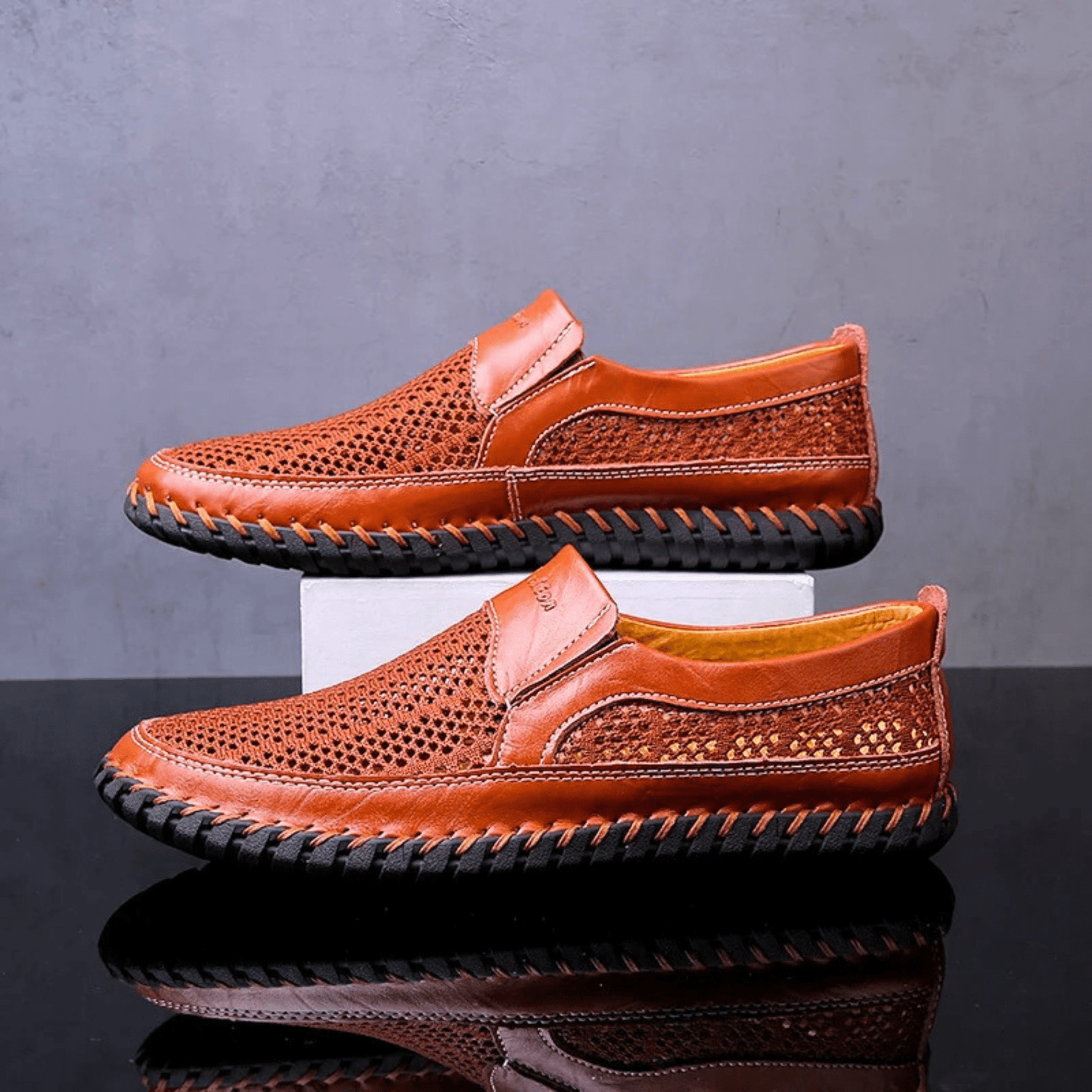 Crafted with a breathable hollow-out design and cushioned insole to keep your feet cool and supported. Finished with a durable non-slip sole and refined stitch detailing, they’re the perfect blend of casual style and functionality.