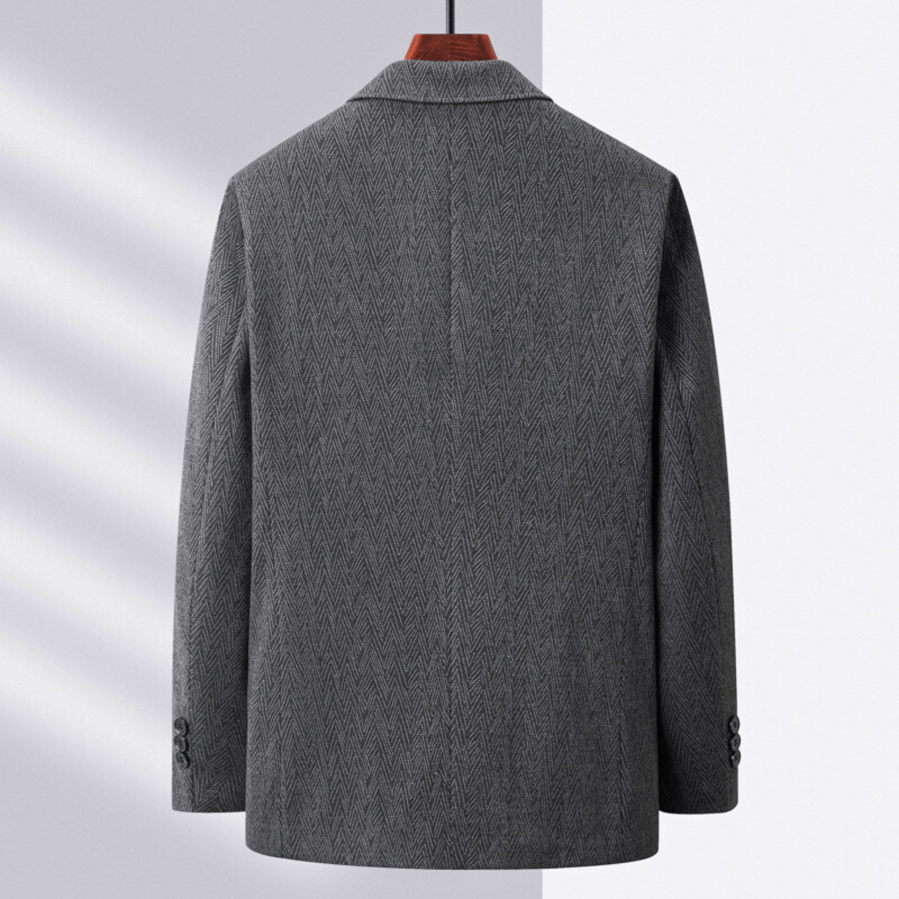 Crafted from premium Australian wool, delivering natural breathability, warmth, and a refined herringbone texture. Designed with a timeless tailored silhouette, it transitions seamlessly from business meetings to evening occasions.