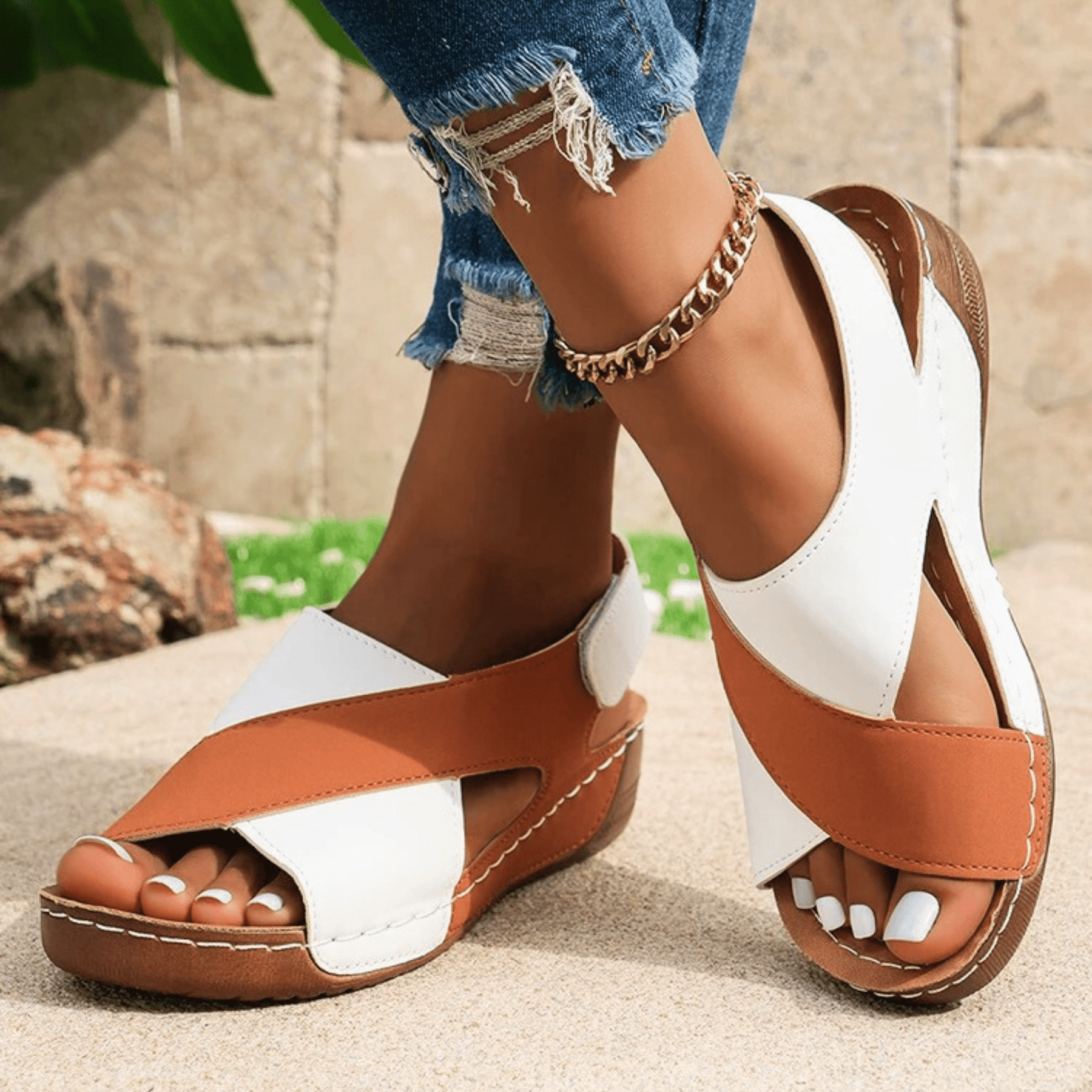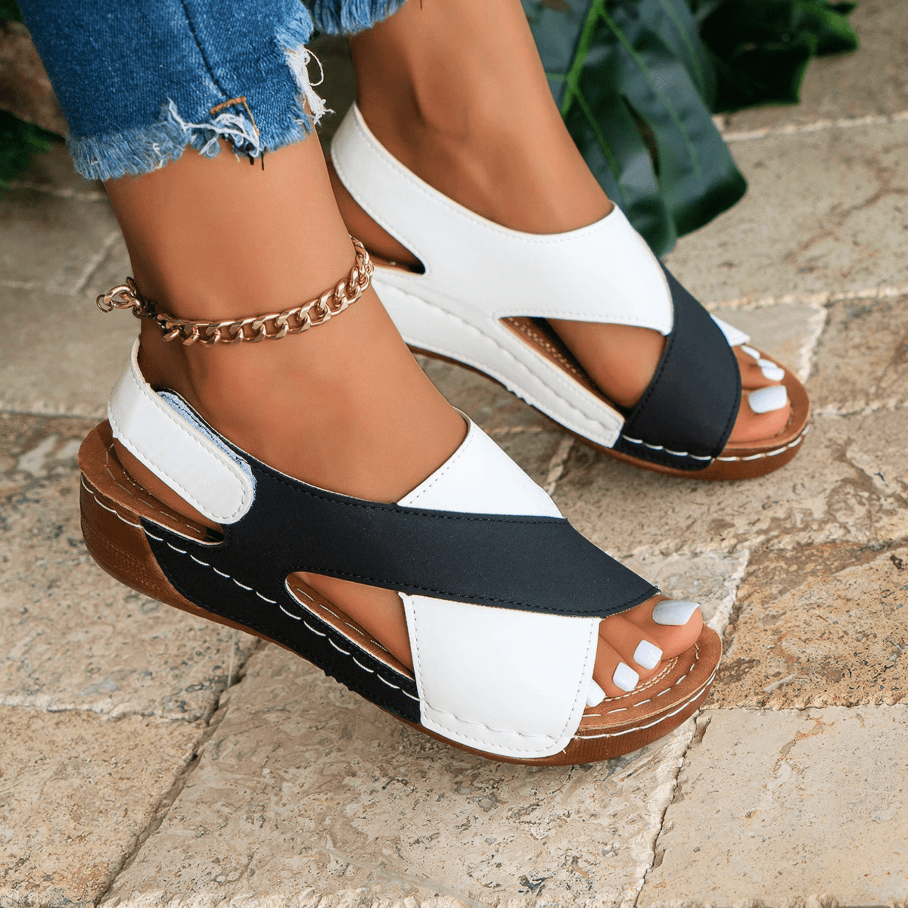 Crafted with chic leather straps and a soft, flexible fit for all-day comfort. The cushioned insole and elegant two-tone design make them a must-have for your spring and summer wardrobe.