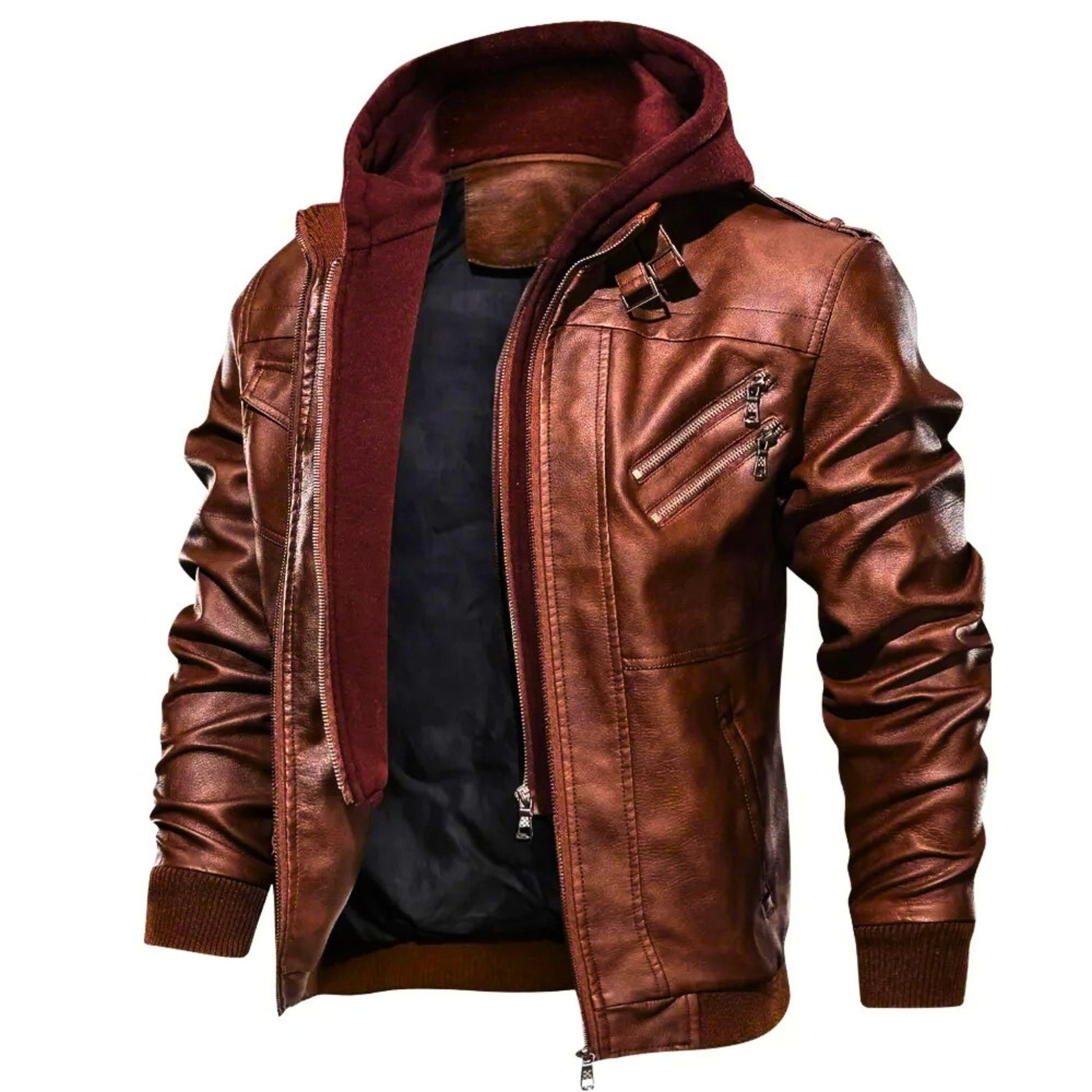 Crafted from premium leather with a cozy hood, offering both comfort and style. Its sleek, urban design blends practicality with a street-smart look.