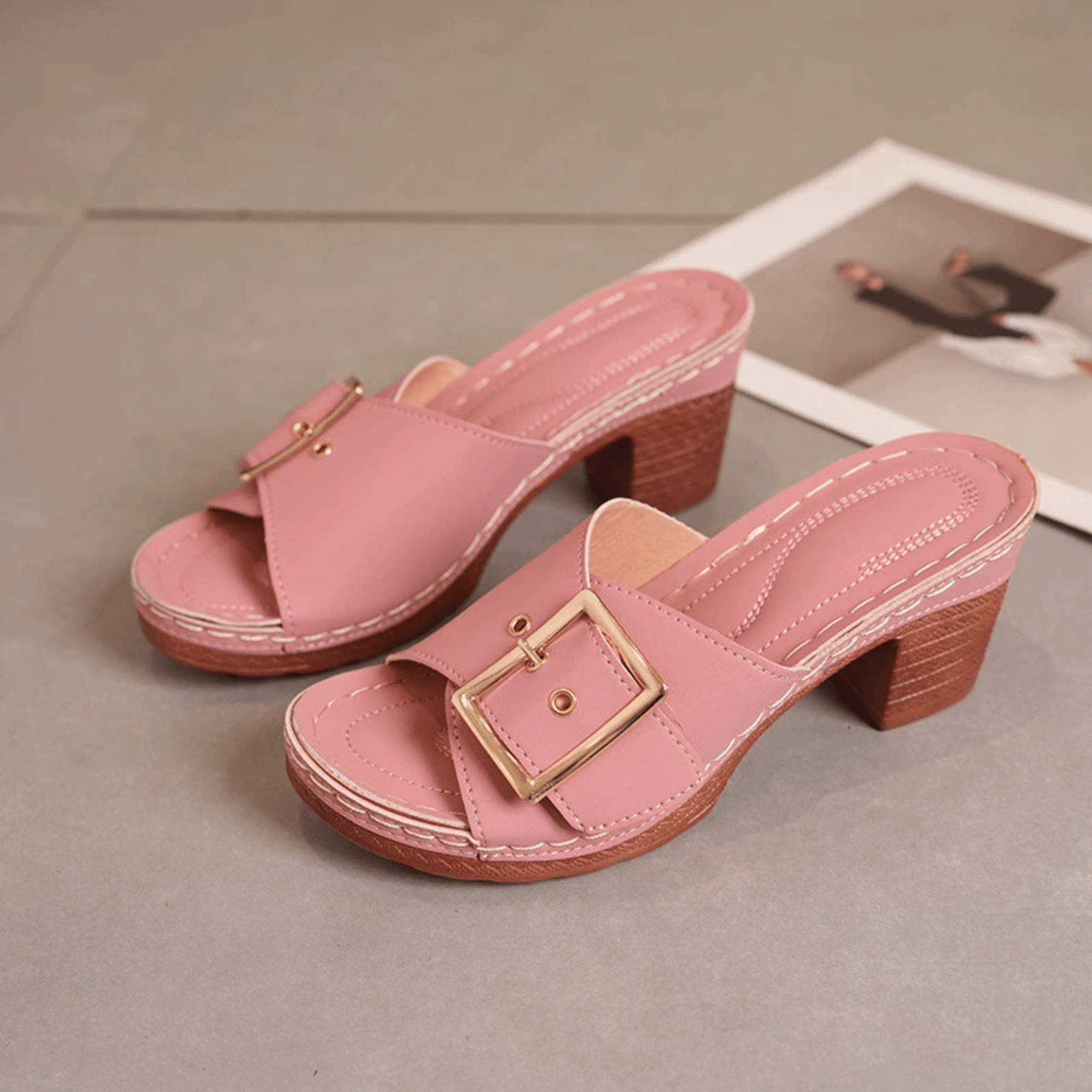 Embrace ultimate luxury with a sleek square heel and a chic, pull-on fit for a modern look. With a soft, flexible construction and a cushioned insole, these sandals offer the perfect balance of luxury and comfort.
