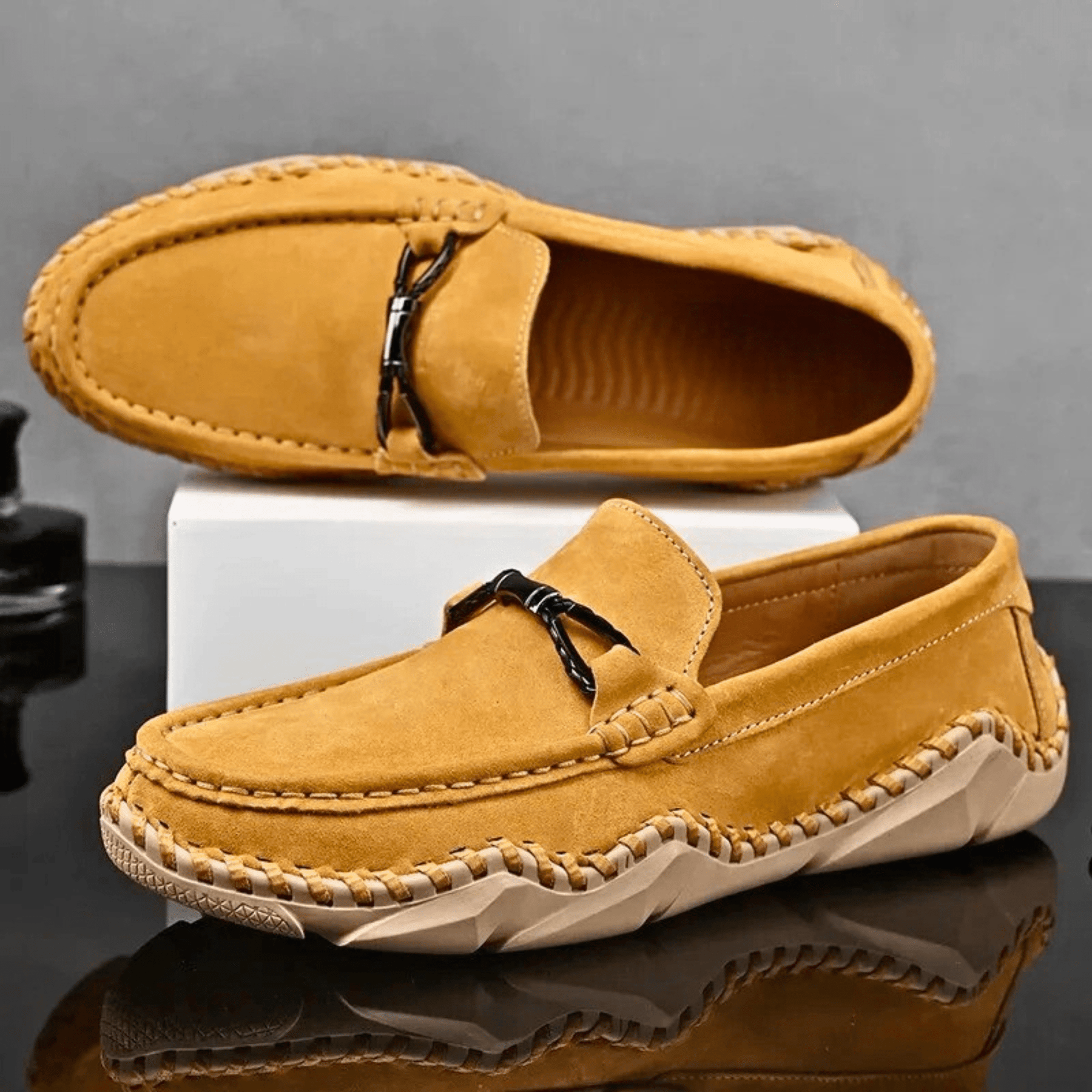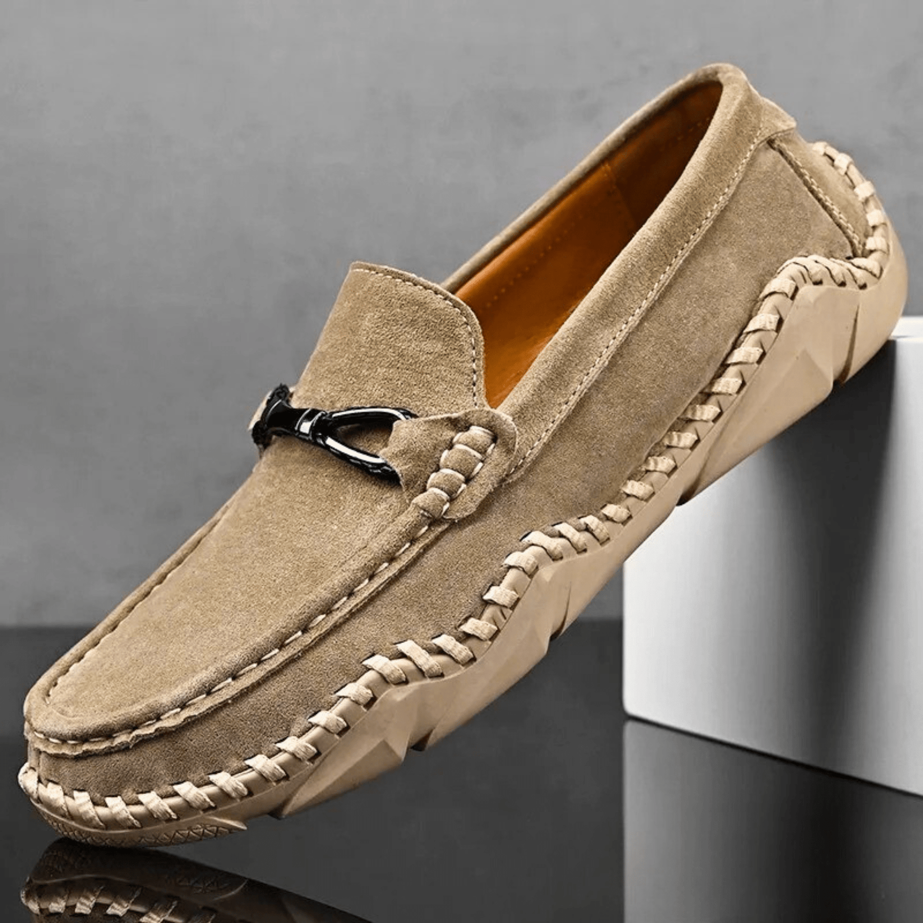 Crafted from soft suede leather with hand-stitched detailing, while the soft cushioned footbed and supportive sole provide unmatched comfort with every step you take.