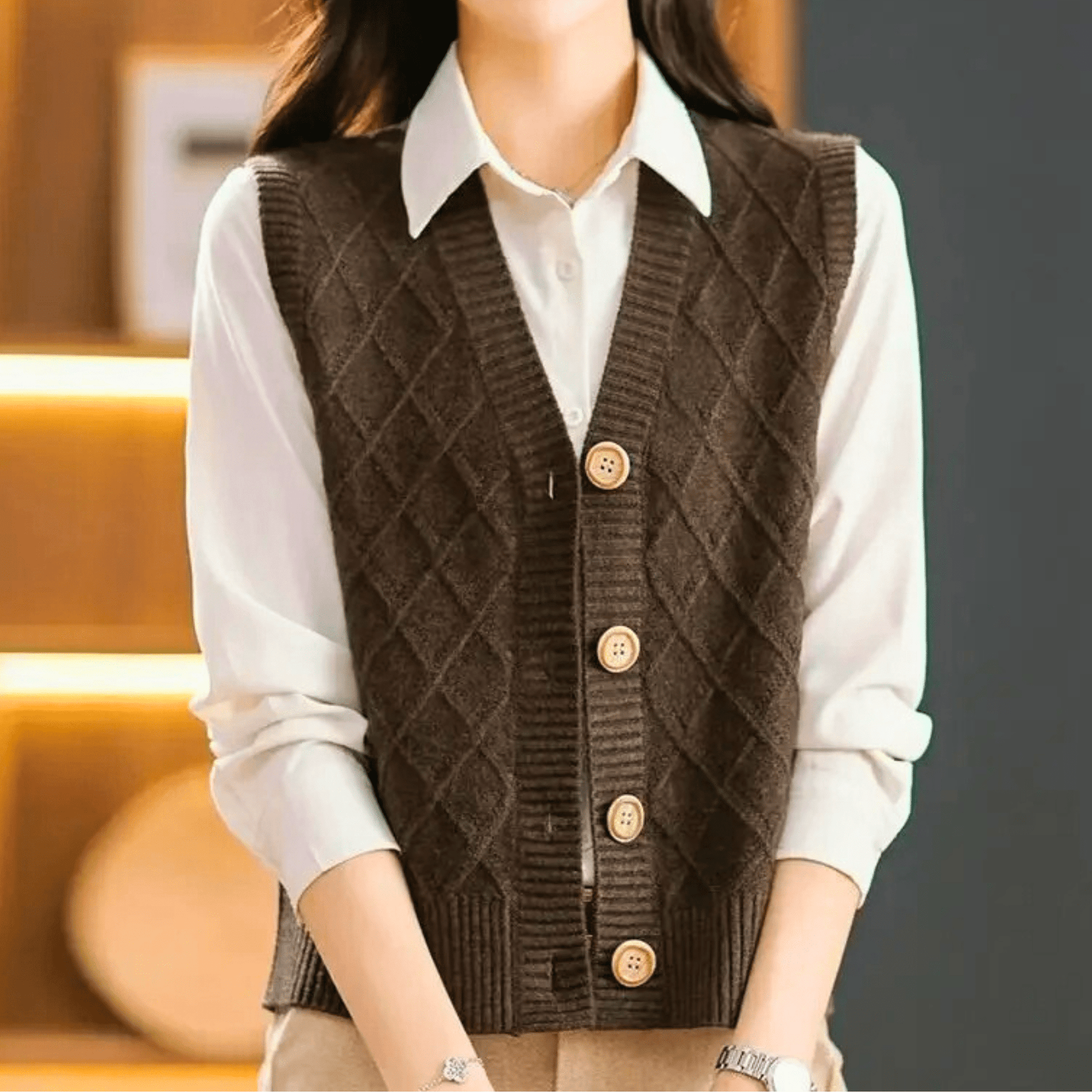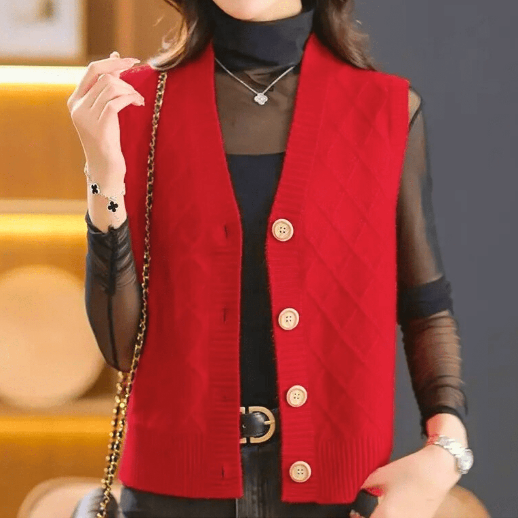 Featuring a cozy knit design made from ultra-soft fabric, offering all-day comfort, while its sleek silhouette and tailored fit make it a versatile piece, perfect for layering over any outfit to create a chic, effortless look.