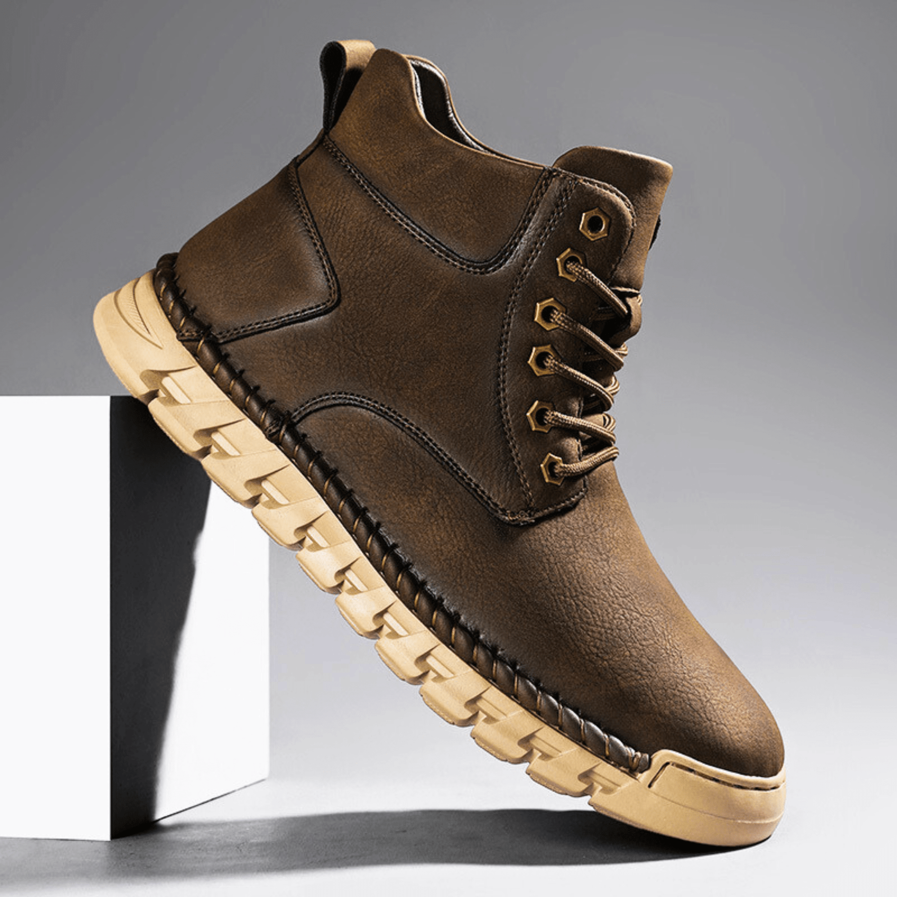 Handcrafted from premium leather with seamless stitching and a cushioned interior for lasting comfort. Defined by its tailored ankle silhouette and flexible, weather-resistant sole, it delivers refined durability and confidence for the modern man.