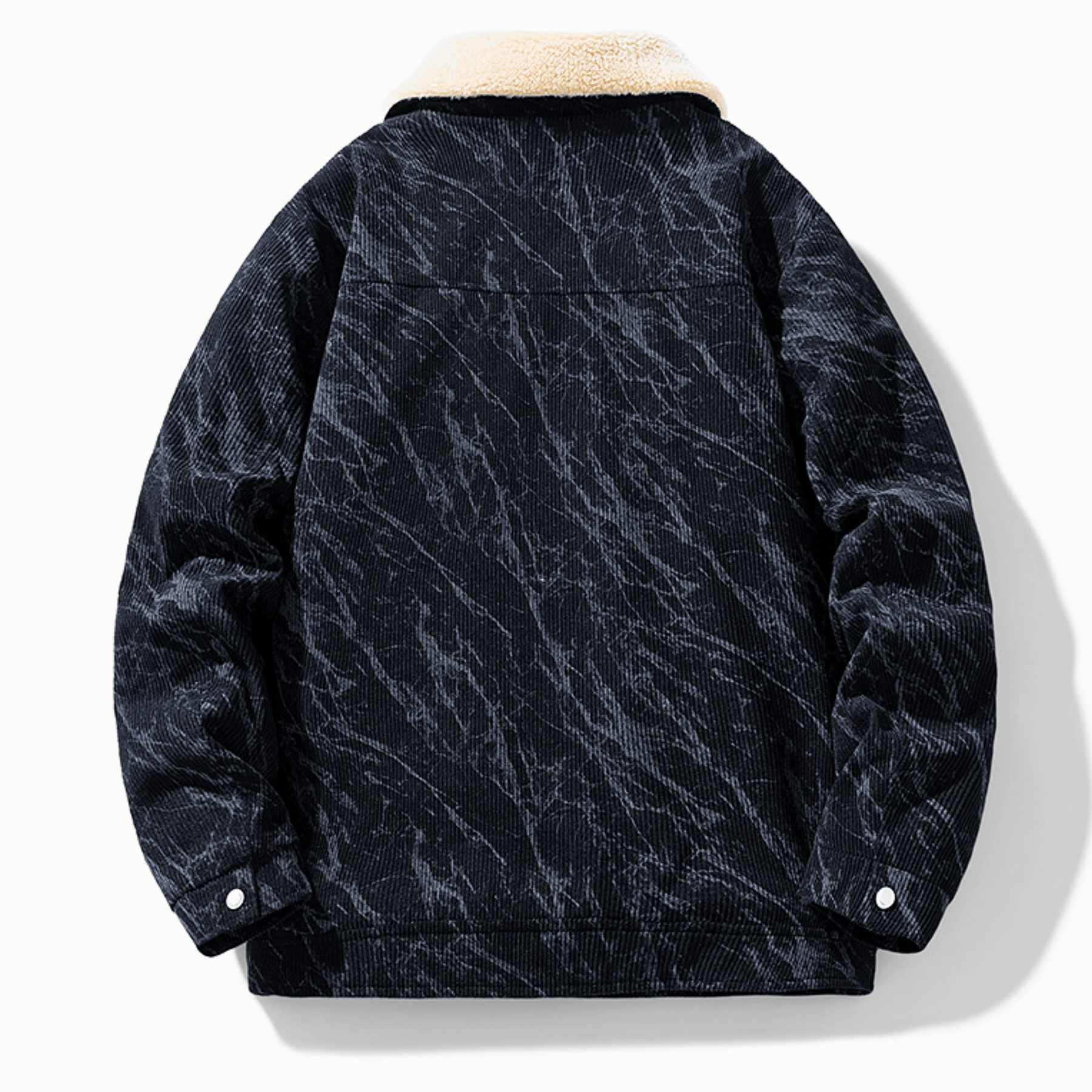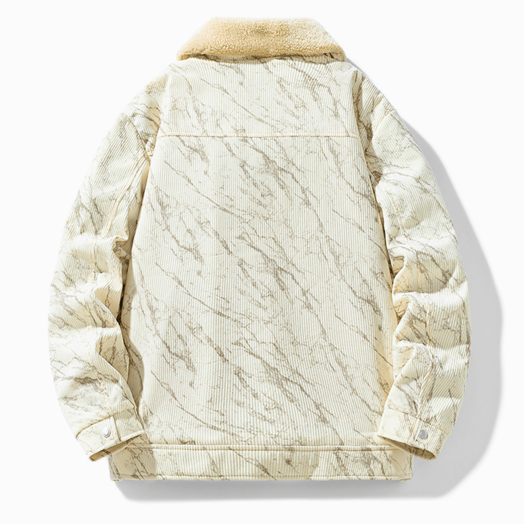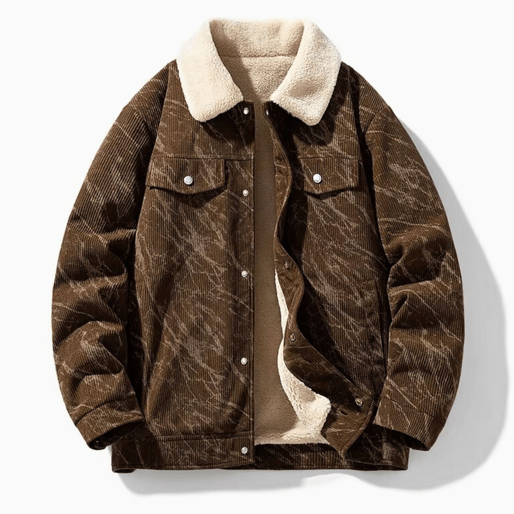 Crafted from rich corduroy with a plush sherpa lining, delivering structured warmth with refined ease. Defined by its heritage trucker silhouette and marble-textured finish, it moves seamlessly from city streets to mountain retreats.