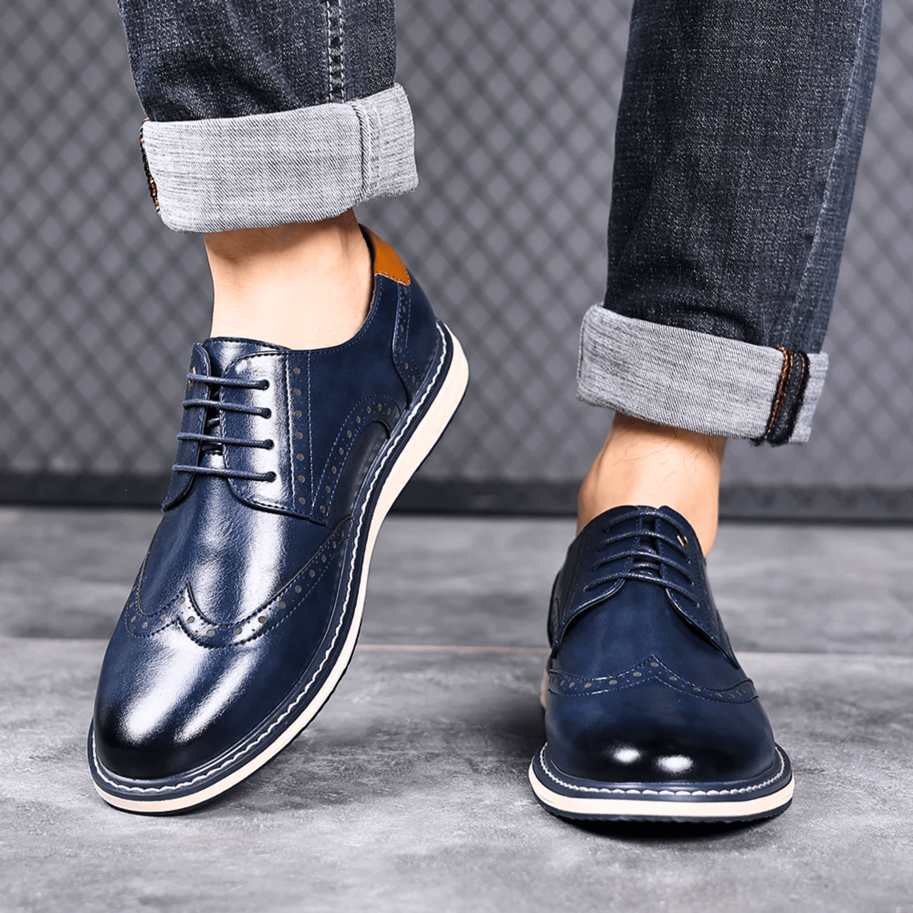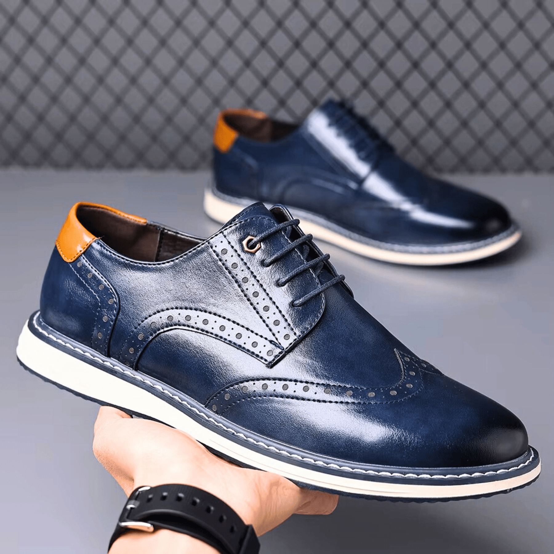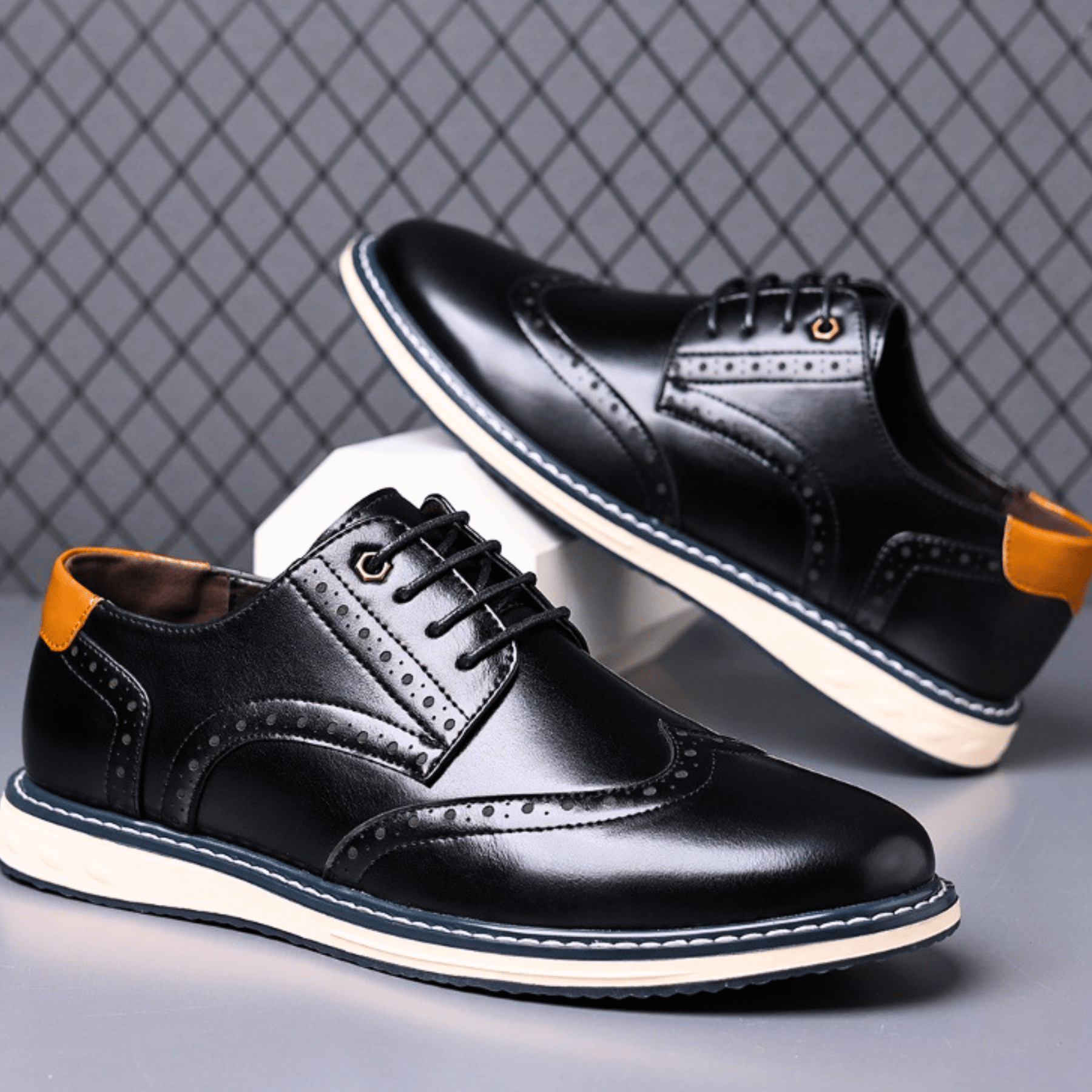 Crafted from polished leather with precision brogue detailing, delivering timeless style with lasting comfort. Defined by its sleek silhouette and subtle contrast accents, it evokes confidence in every step.