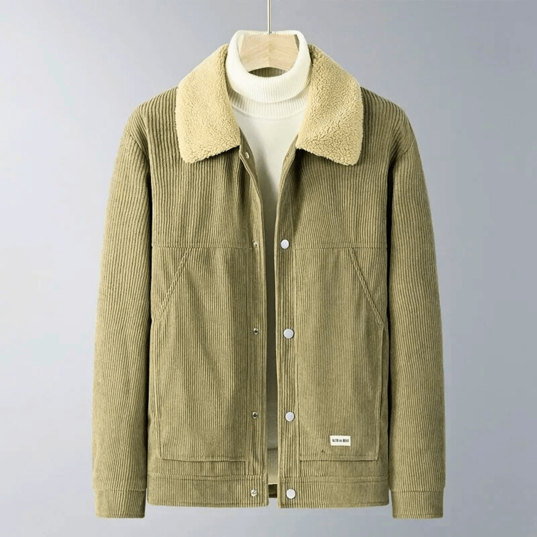 Crafted from premium corduroy with a luxuriously sherpa lining, delivering refined warmth and comfort. Defined by its tailored silhouette and minimalist design, it embodies confidence with modern style.