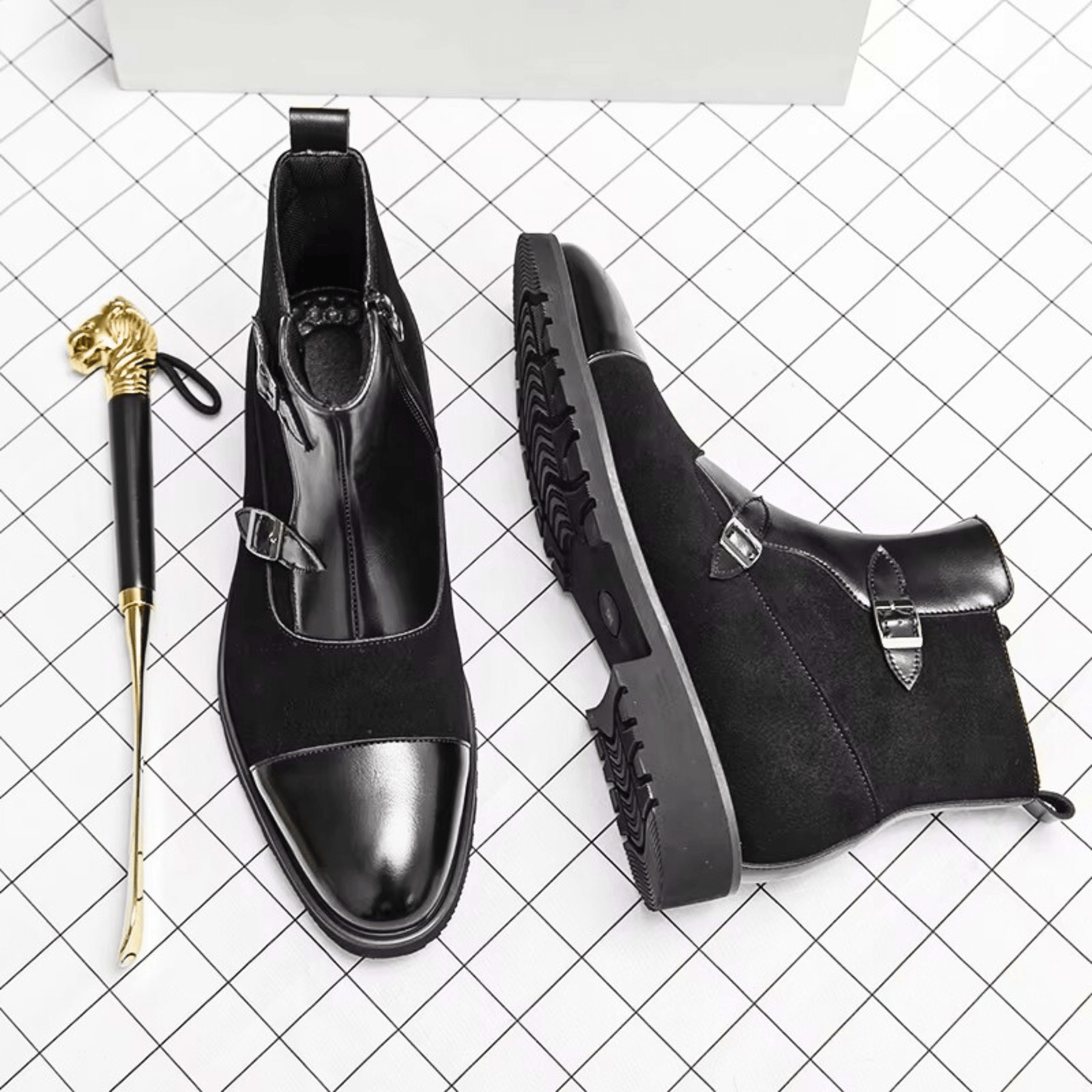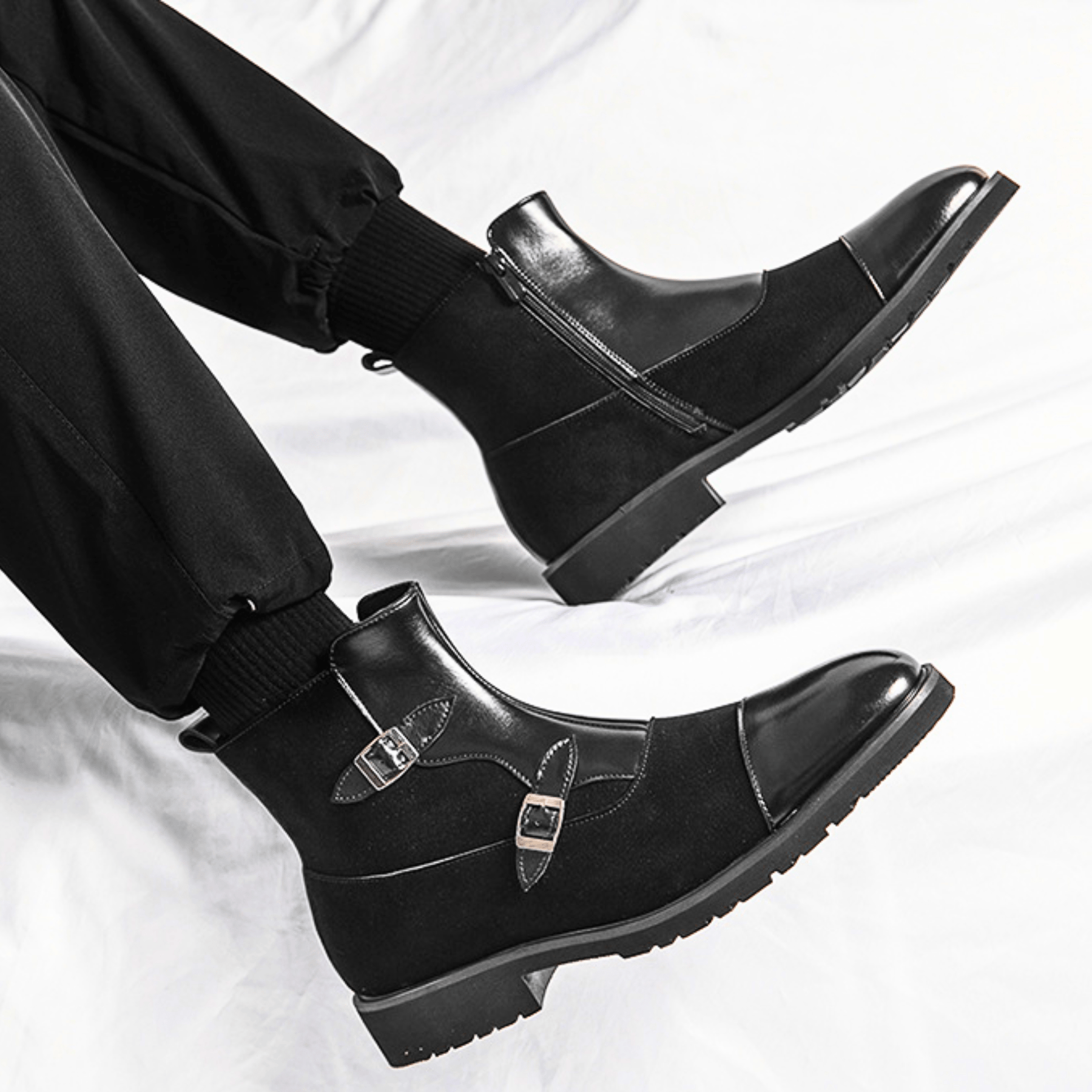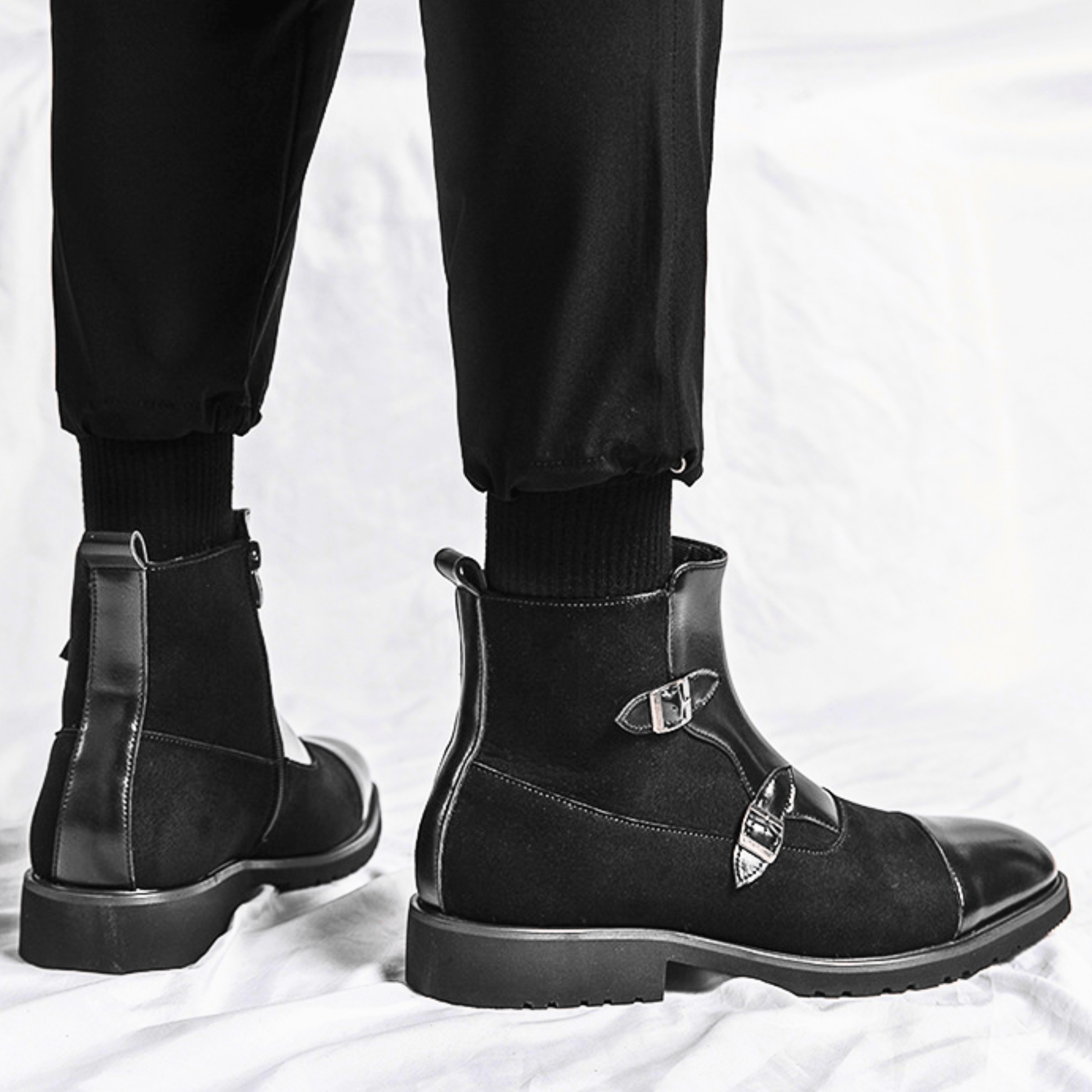 Crafted from premium leather and suede accents, delivering refined texture with lasting durability. Defined by its sculpted silhouette and polished buckle accents, it evokes understated confidence in every step.