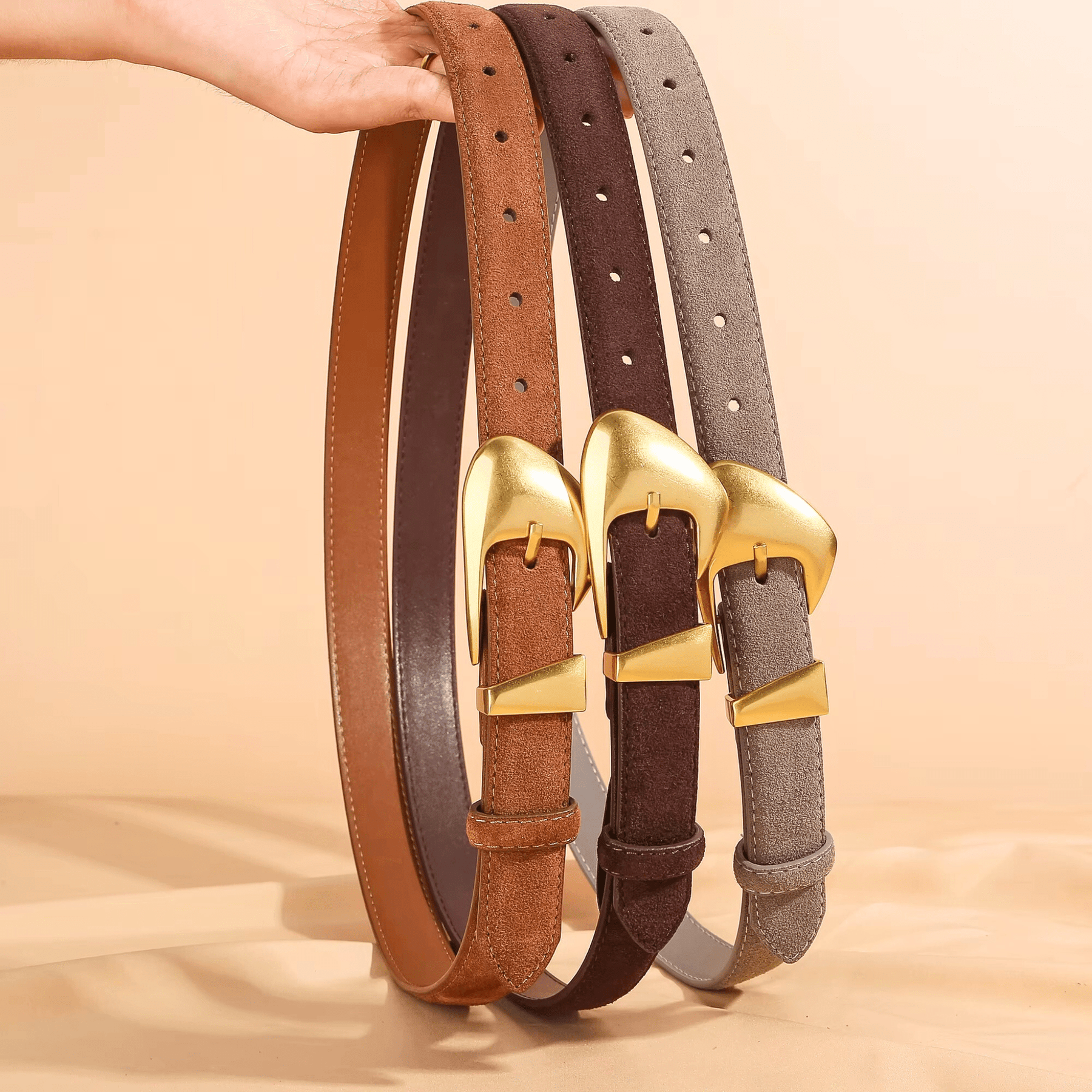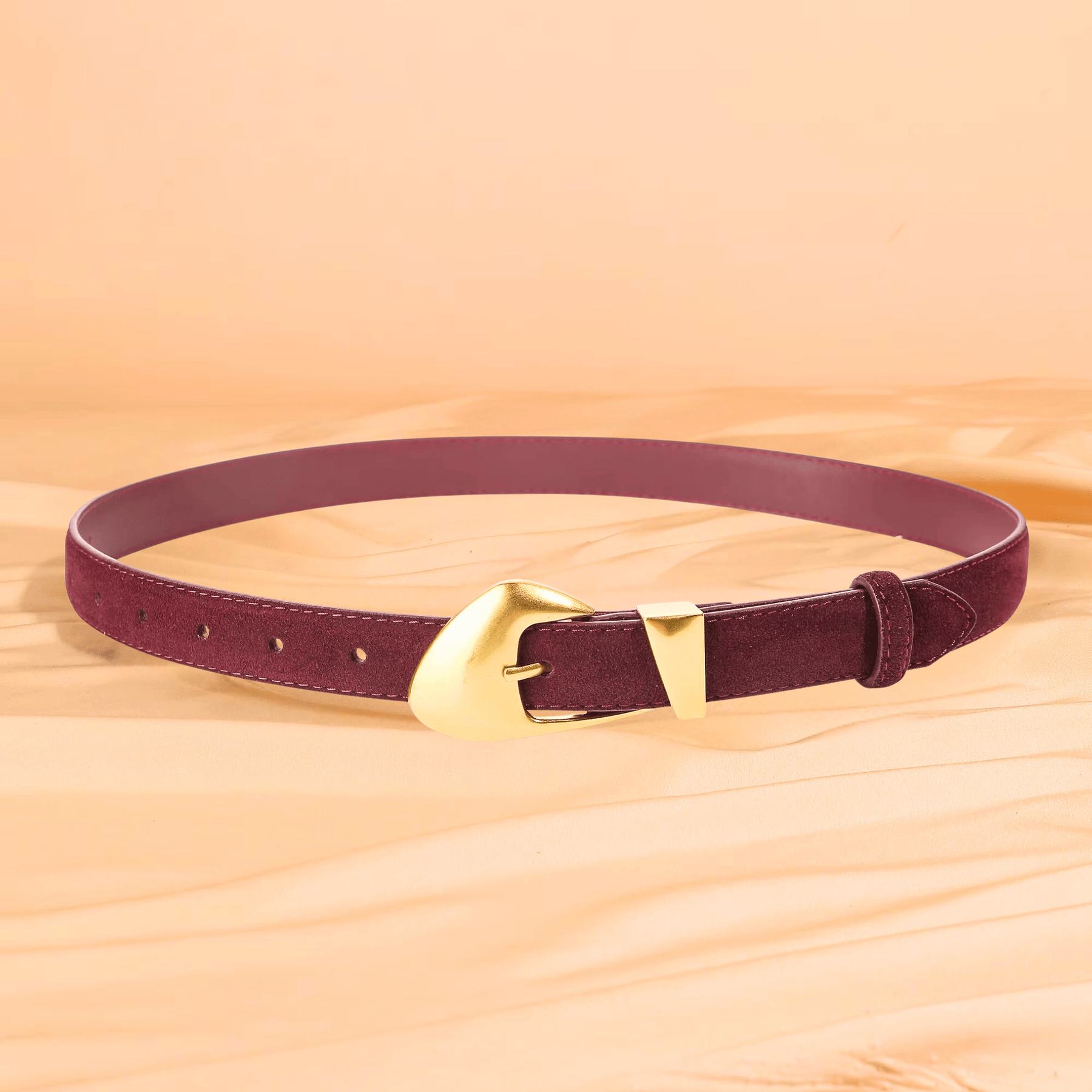 Crafted from soft suede with a sculpted gold buckle, delivering refined texture with premium craftmanship. Defined by its velvet finish, it embodies confidence and timeless style.