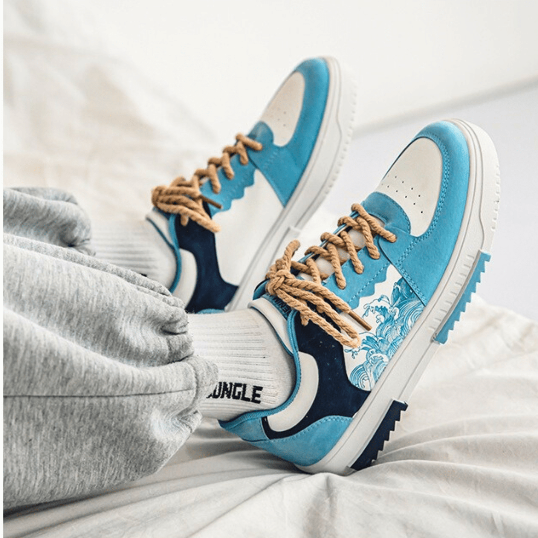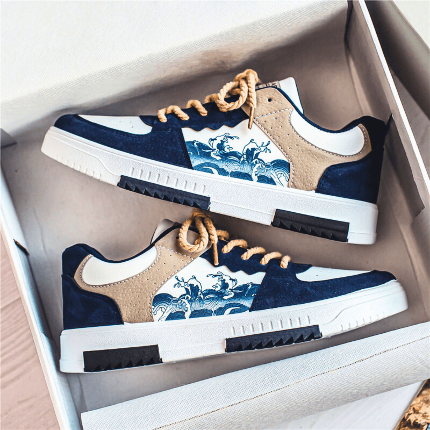 Crafted from premium leather with soft suede accents, delivering refined craftmanship with lasting support. Defined by its sleek low-top silhouette and Great Wave art design, it embodies refined streetwear style.