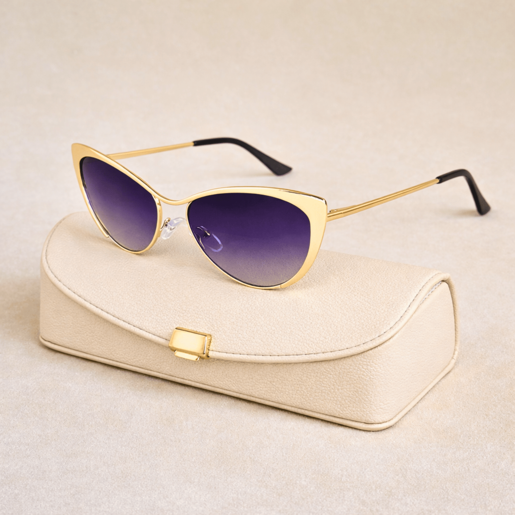 Crafted from polished metal with a sculpted cat-eye silhouette, delivering sharp, clean lines that define the face. Slim, lightweight temples and refined gradient-to-deep tint lenses create a statement design.