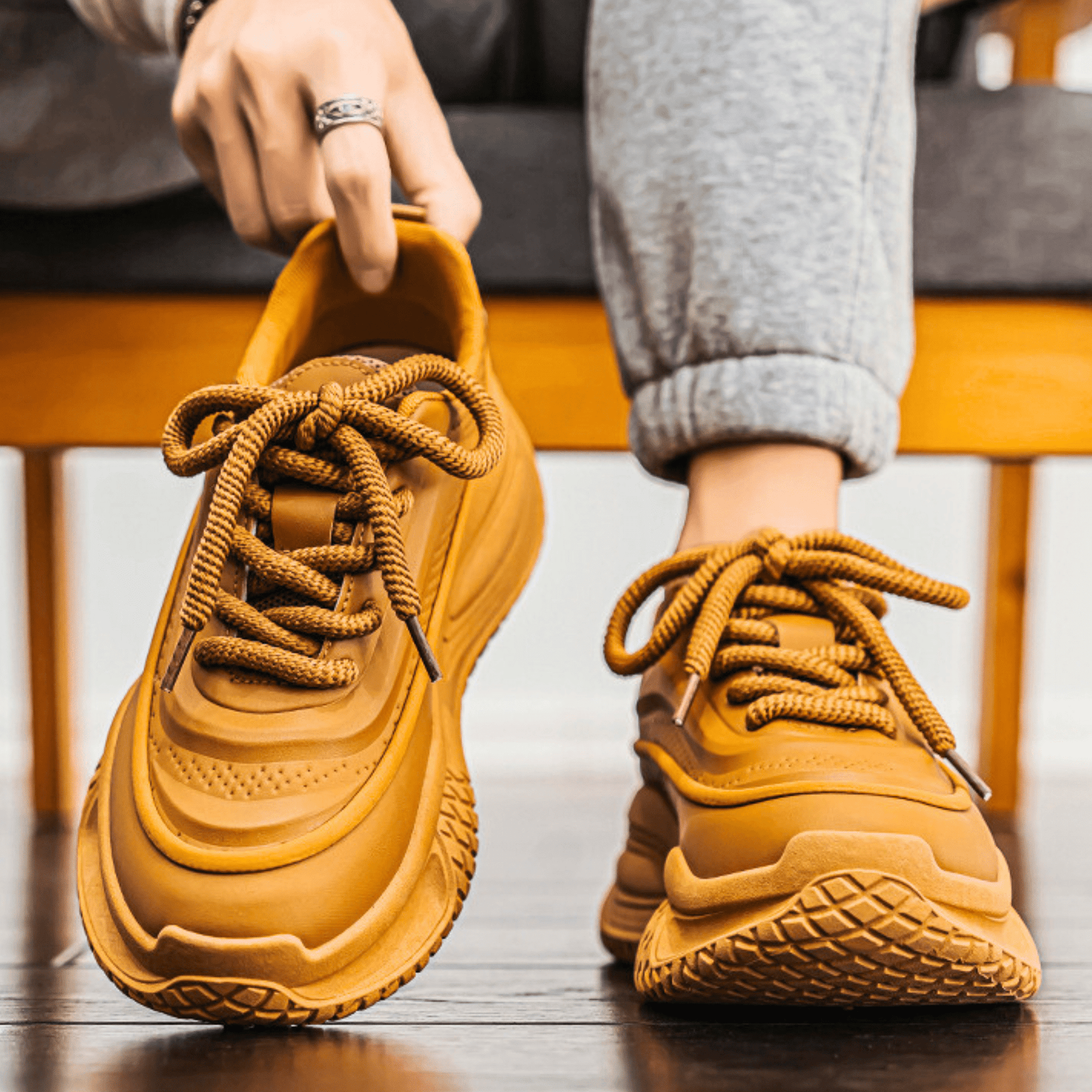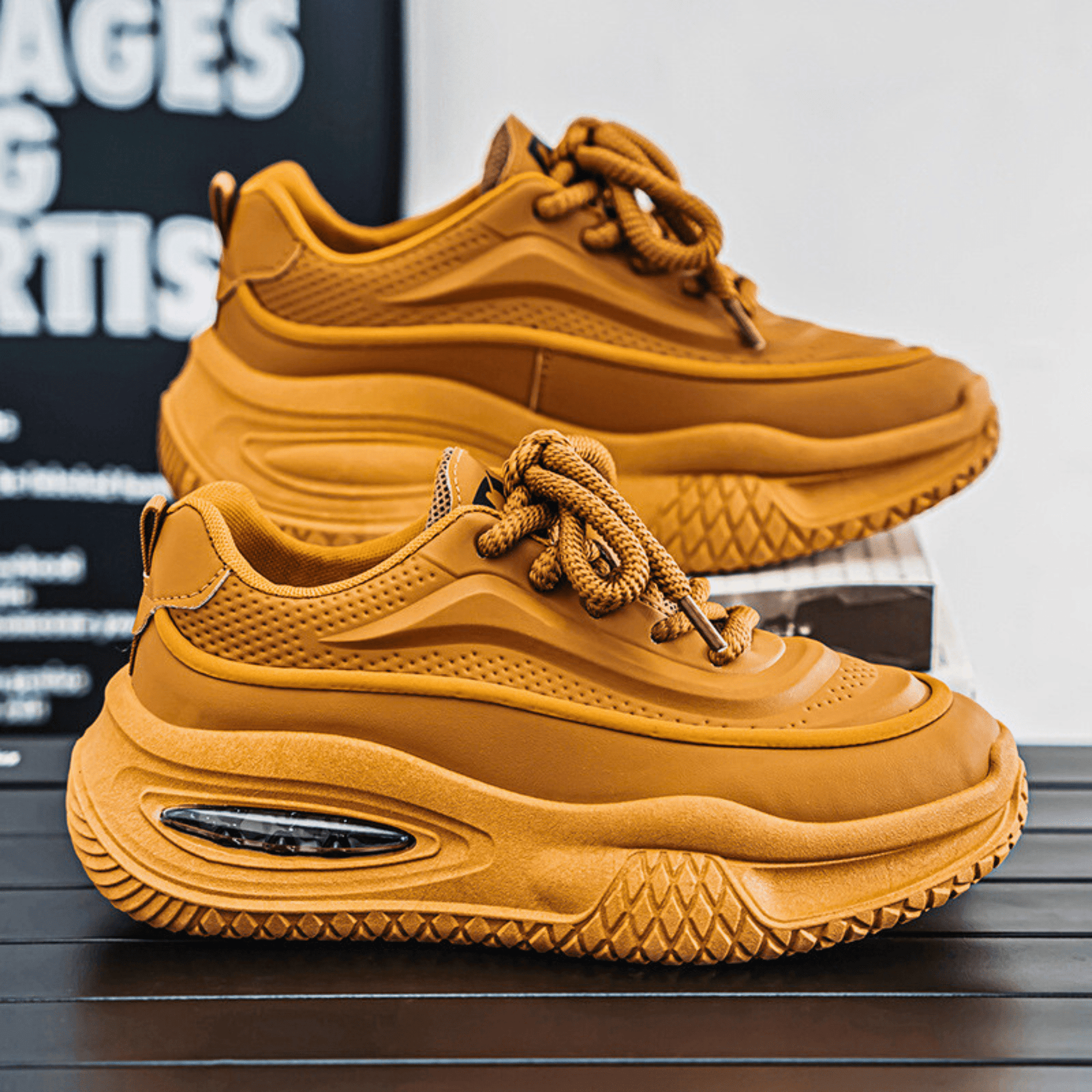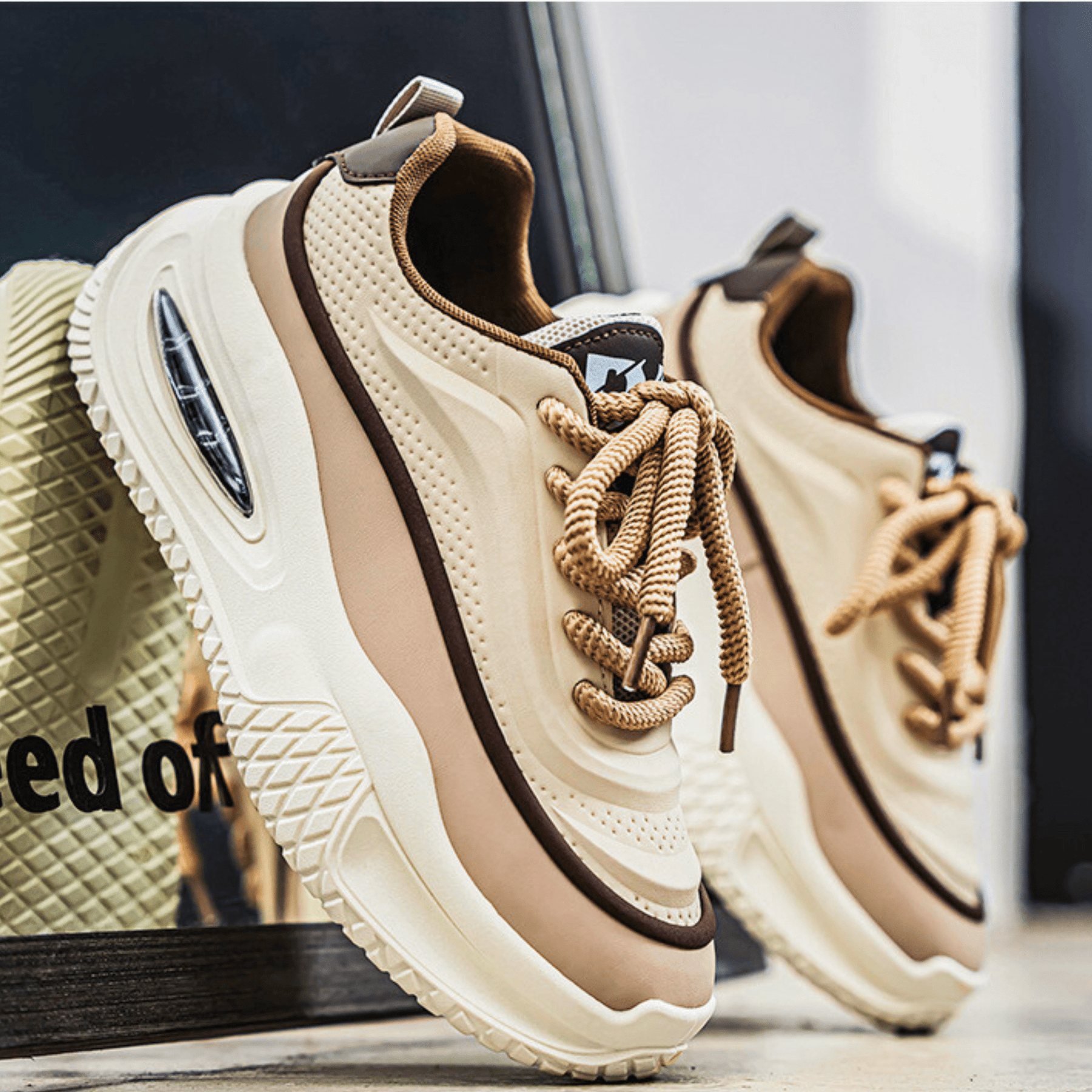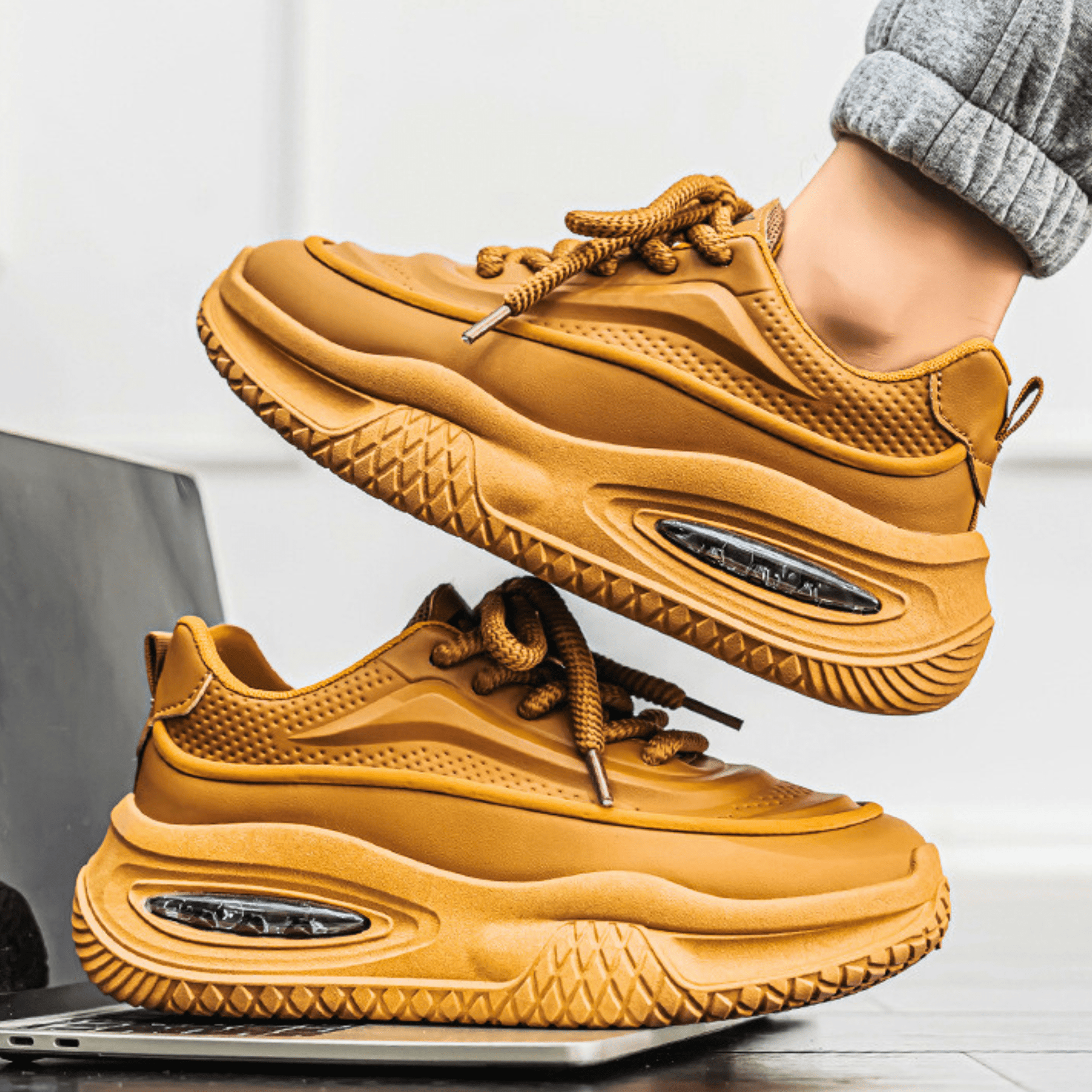 Crafted from premium leather with precise layered panels, delivering adaptive comfort with shock-absorbing support. Defined by its platform sole and air cushioning, it brings confidence in every step.