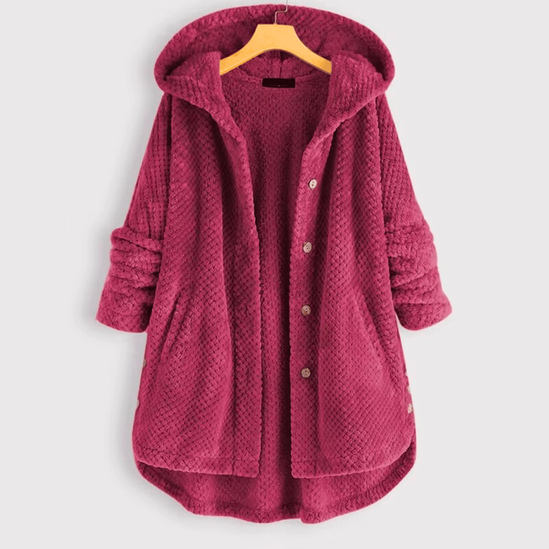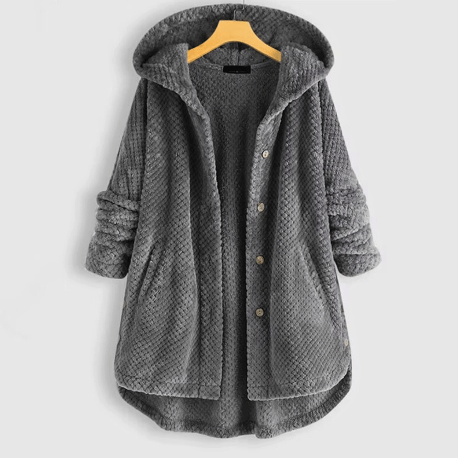 Crafted from ultra-soft double-sided fleece with a refined textured finish, delivering exceptional warmth in a relaxed, tailored silhouette. Designed with a functional hood and button-front closure, it transitions seamlessly from cozy weekends to everyday wear.