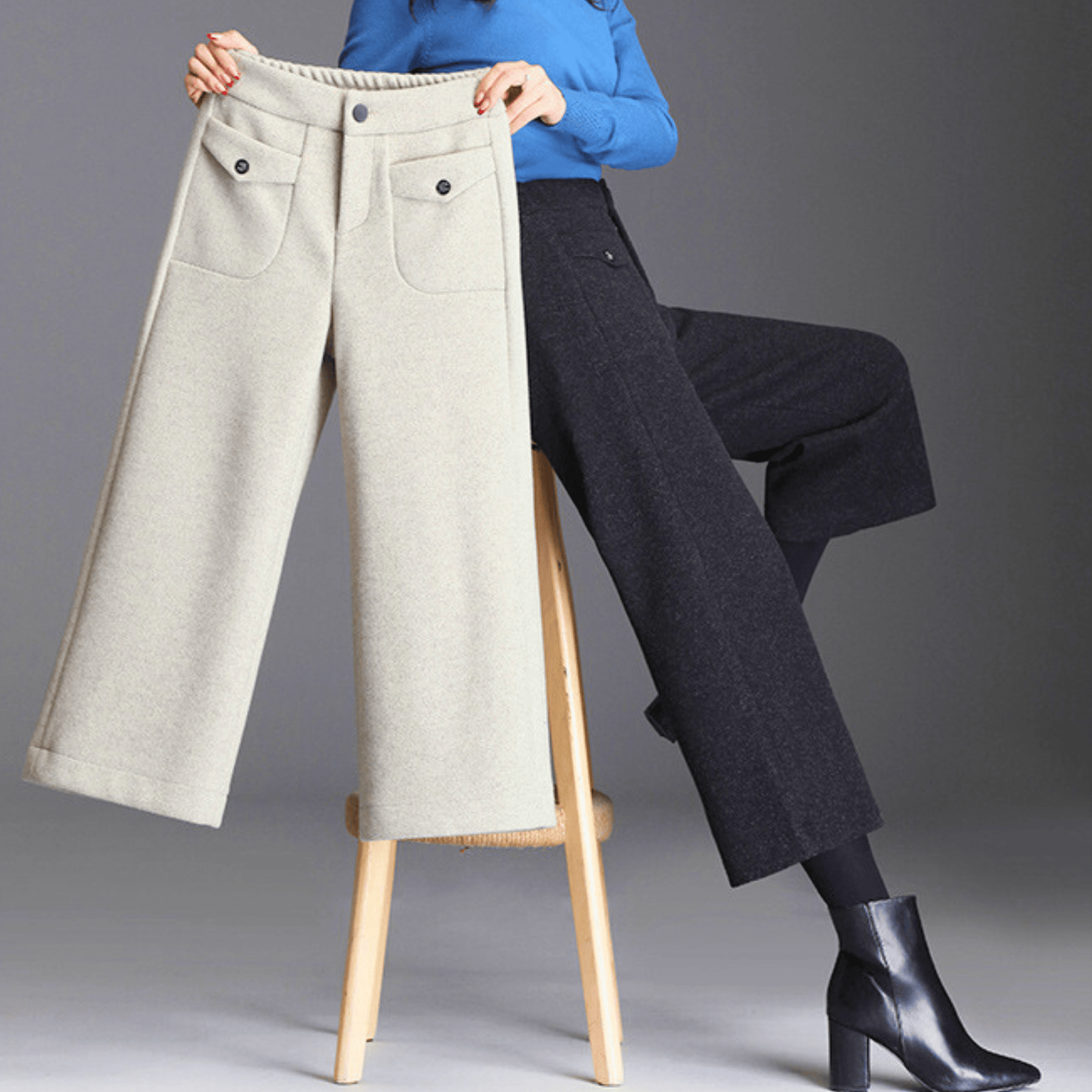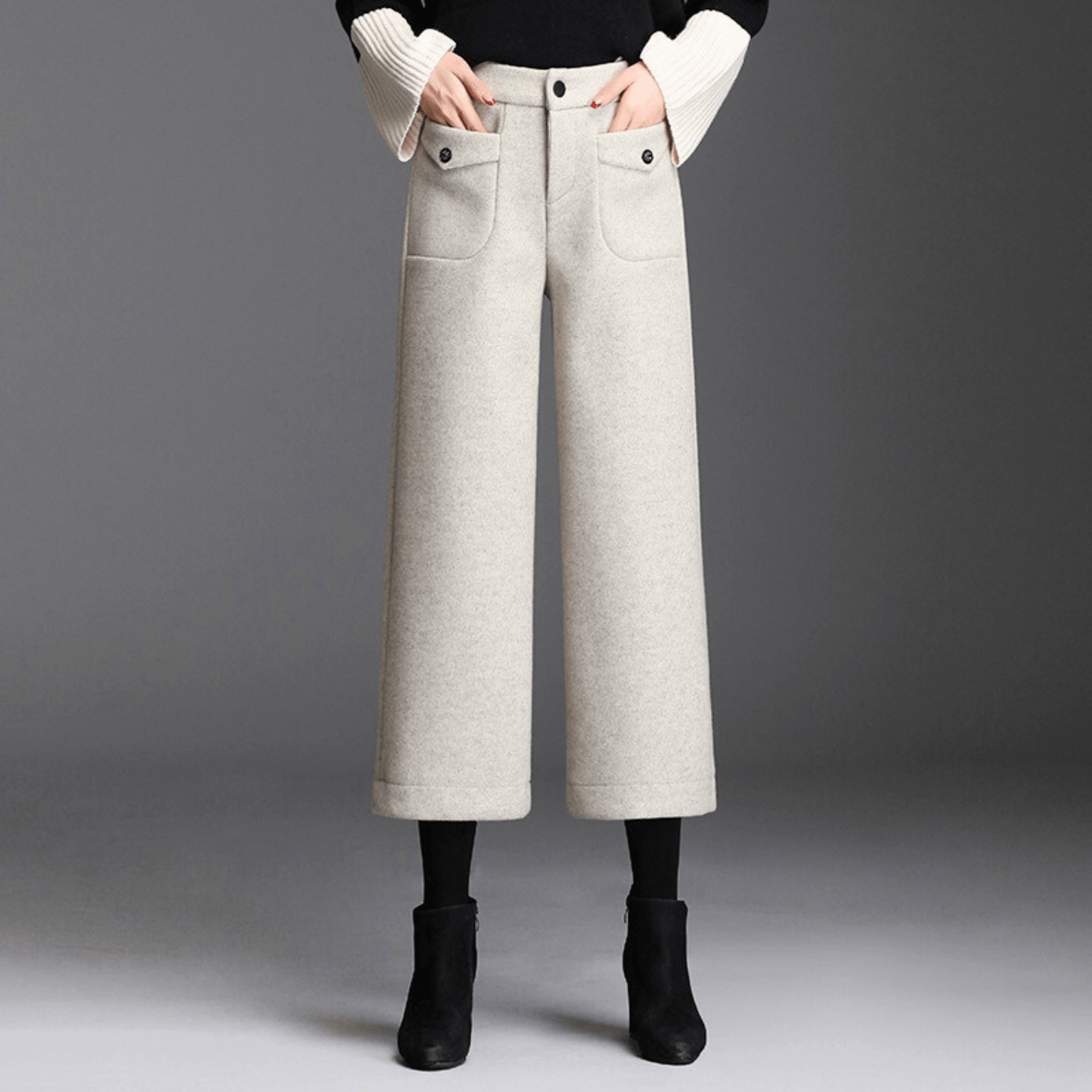 Crafted from premium double-knit wool with a flattering high-rise fit, delivering exceptional warmth and style. Defined by its structured wide-leg silhouette and elegant cropped length, it evokes timeless feminine style.