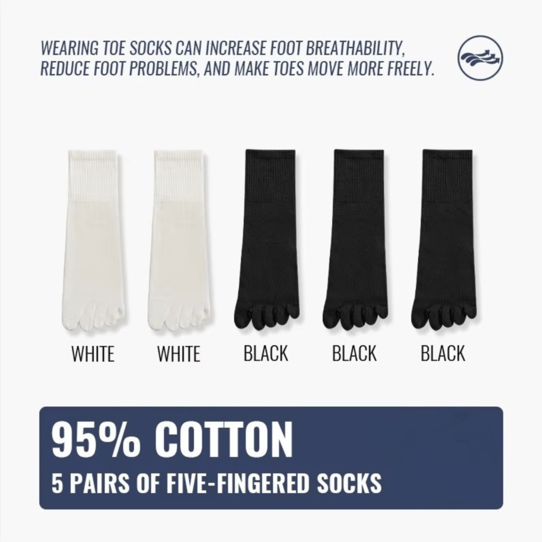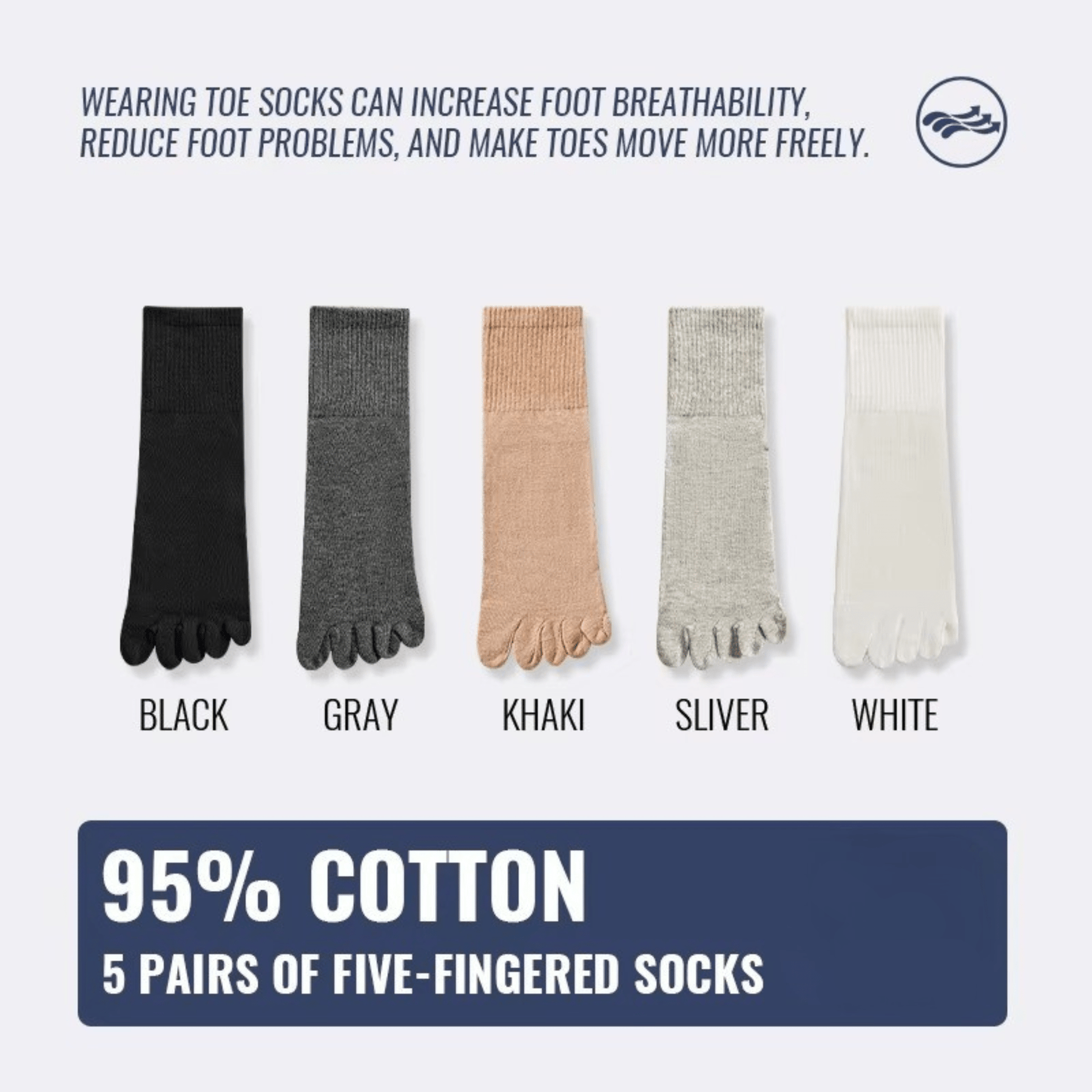 Crafted from breathable cotton with natural antibacterial protection, delivering enhanced freshness with seamless all-day comfort. Defined by its shape-retaining Lycra cuff and ergonomic toe separation, it evokes everyday comfort.