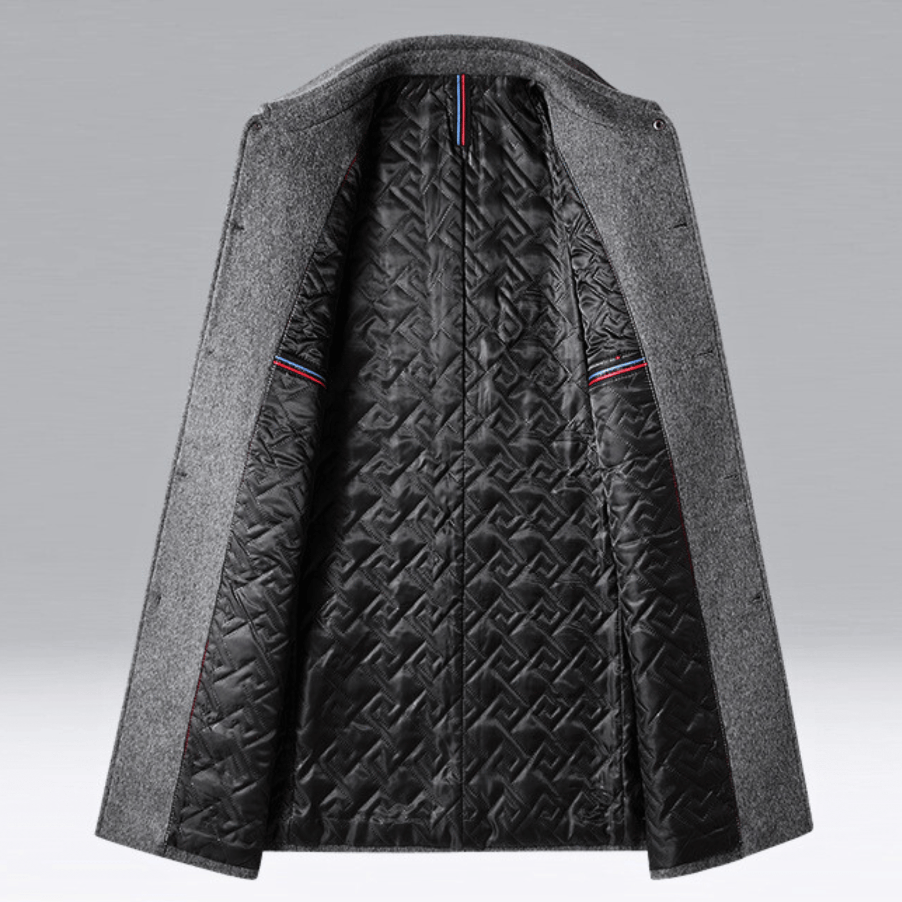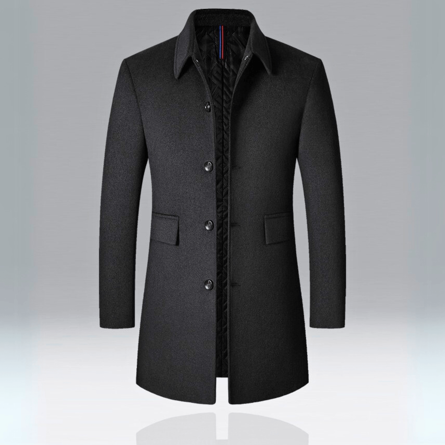 Crafted from premium wool in a tailored longline cut, delivering timeless style and reliable warmth. Designed with a classic turn-down collar and quilted lining, it’s the perfect balance of business-casual and everyday versatility.